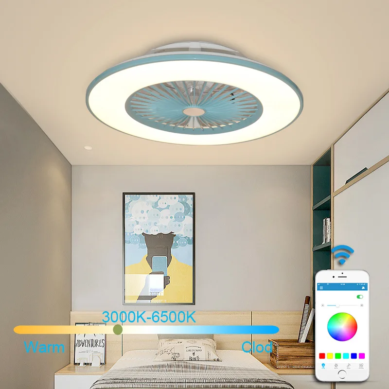 56cm 현대 LED 천장 팬 램프 조명 홈 침실 원격 제어 3-바람 조절 속도 조절 가능 천장 팬 조명