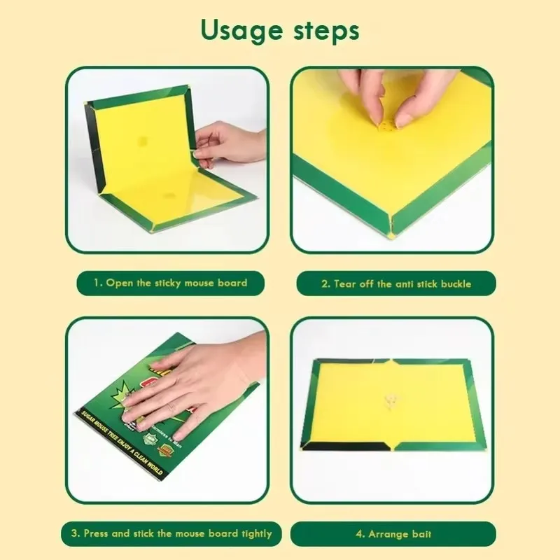 3. 강력한 접착제: 마우스 접착 접착제는 효과적이고 저렴한 해충 방제를 위해 매우 강한 접착제와 넓은 트랩 표면을 가지고 있습니다.