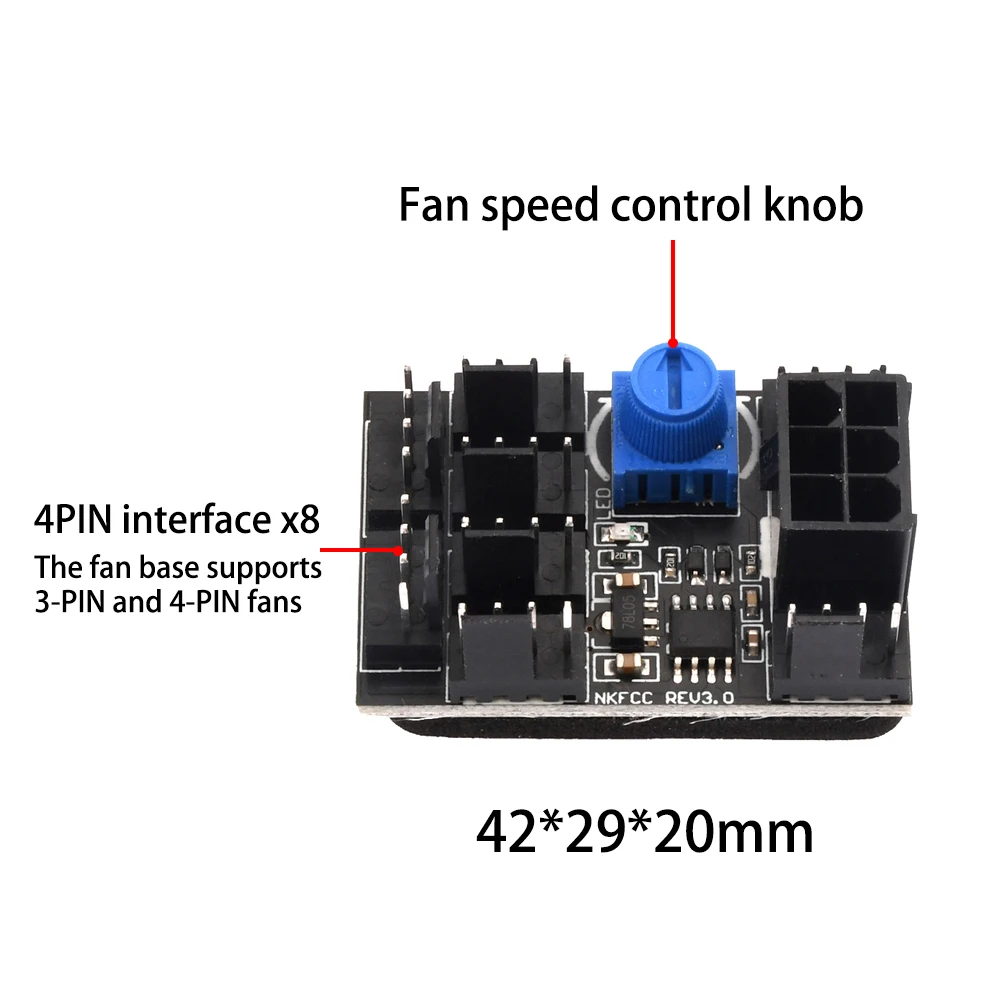 DC 12V 7A 속도 컨트롤러 3 핀 4 핀 팬 어댑터 PWM PC 섀시 냉각 팬 허브 6 핀 전원 포트가있는 8 방향 분배기