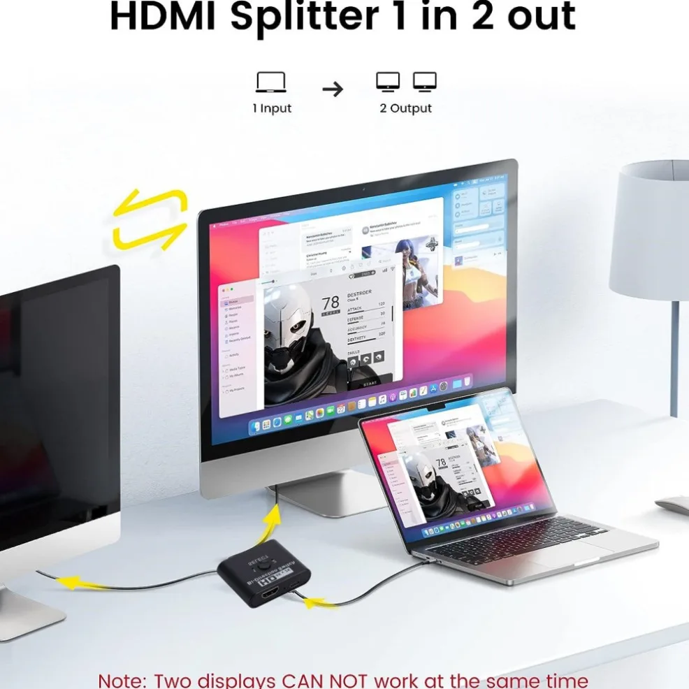 이 HDMI 호환 분배기 1 In 2 Out/ 2 In 1 Out은 두 개의 HDMI 호환 소스를 하나의 HDMI 호환 디스플레이에 연결할 수 있습니다. 또는 하나의 HDMI 호환 소스를 연결하여 두 디스플레이 사이를 전환합니다 (하나의 모니터 만 표시됨).