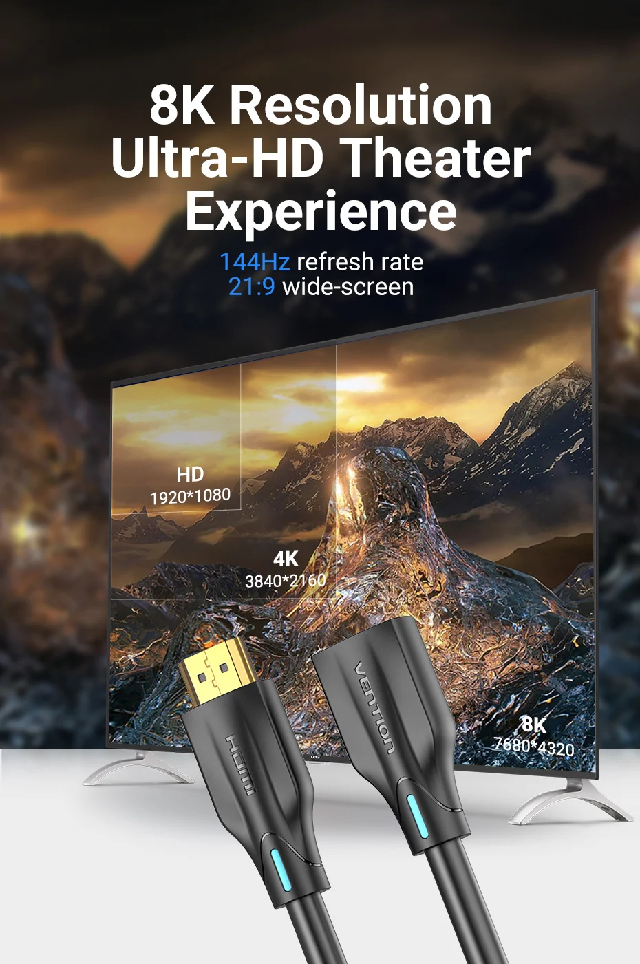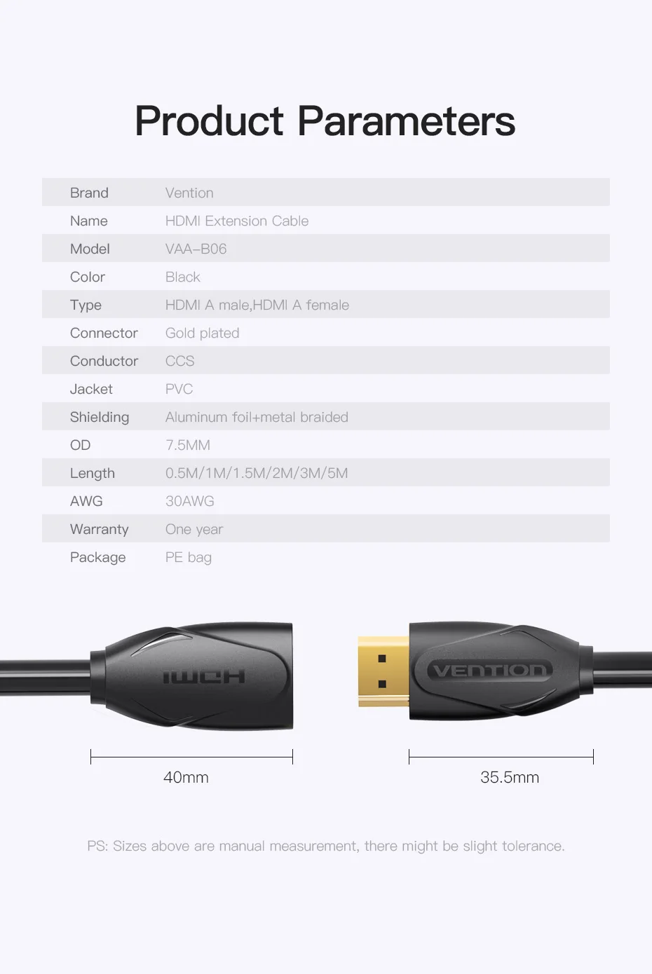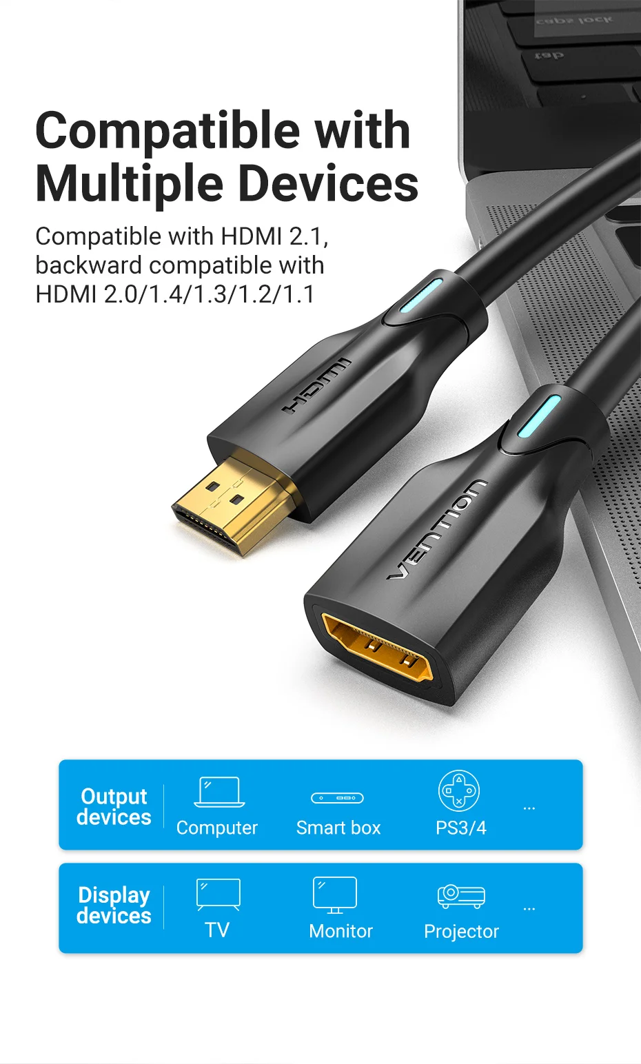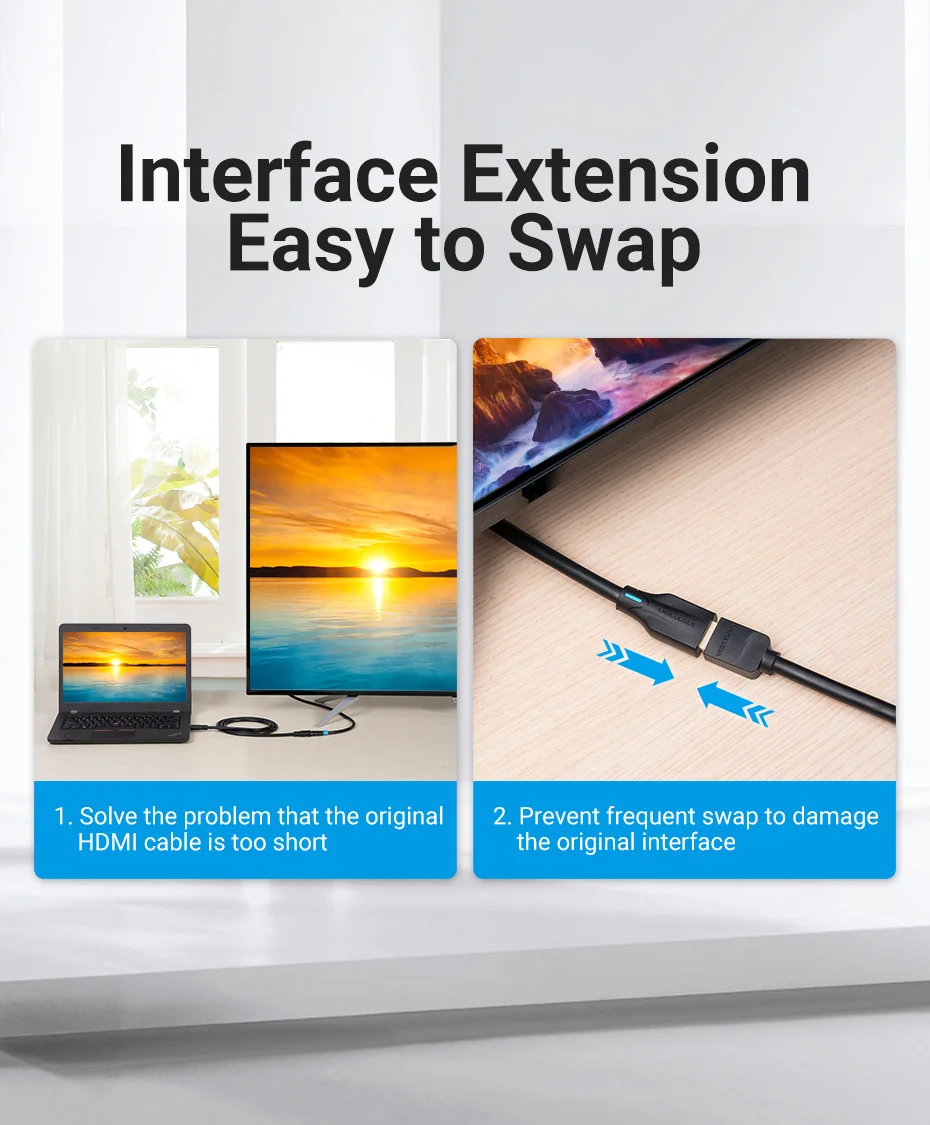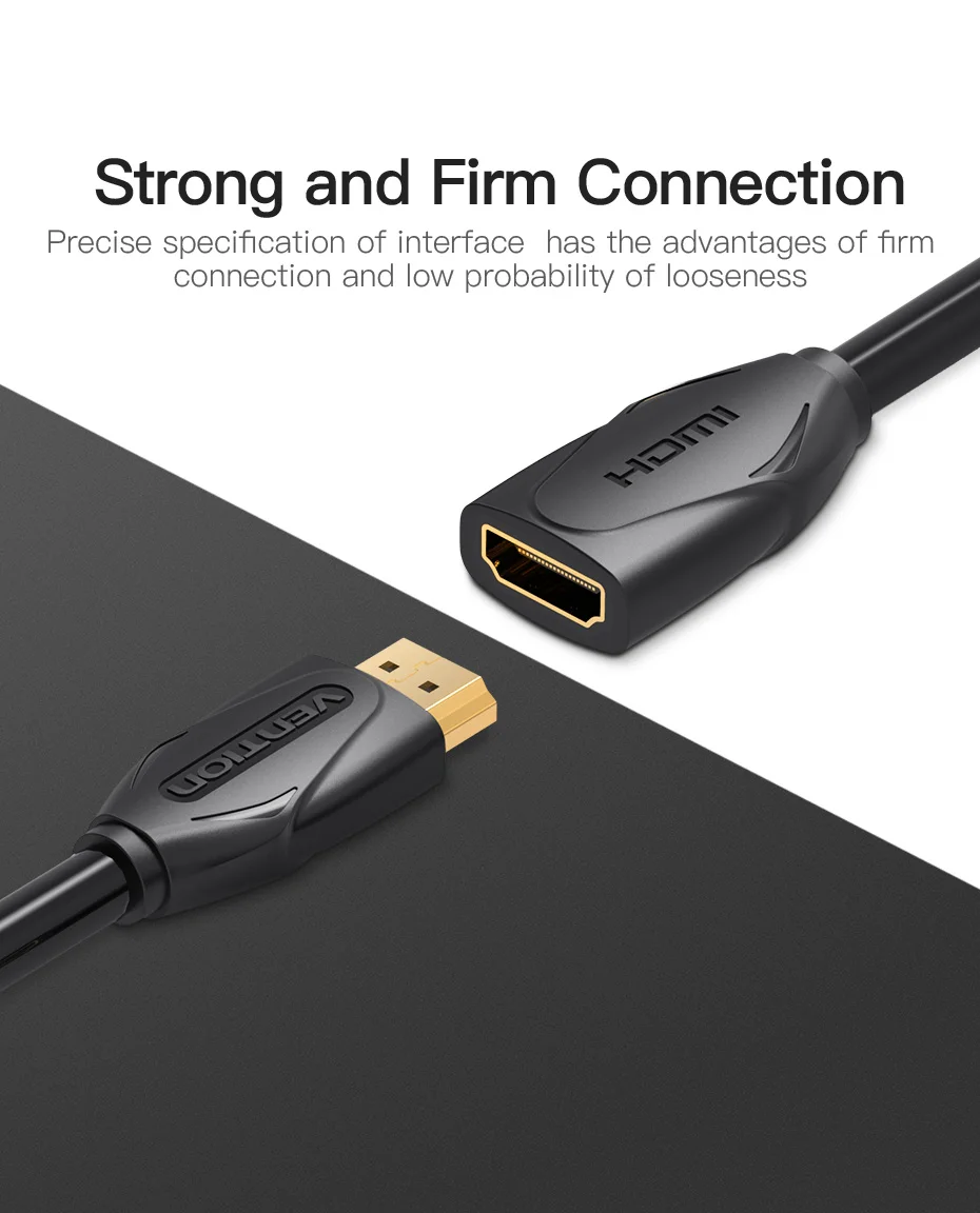 Vention HDMI 연장 케이블은 짧은 HDMI 케이블을 확장하여 모든 표준 HDMI 장치를 연결합니다.