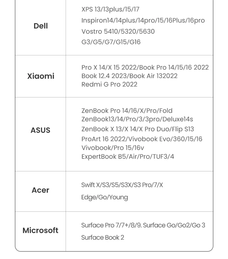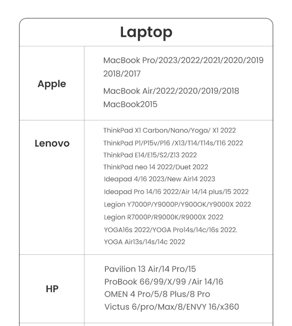 아이폰 15 시리즈/애플 맥북 프로 (2016 이상)/아이맥 (2017 이상)/맥북 에어 (2018 이상)/아이패드 프로 (2021 이상)/맥 스튜디오/맥 프로/표면 책 2/3, 표면 노트북 3, /델 XPS 15/13/HP 크롬북 x360/삼성 갤럭시 S23/S22/S21/S20/S10/S9/S8/노트 20/10/9/8, LG V40, 스팀 데크, 그리고 더.