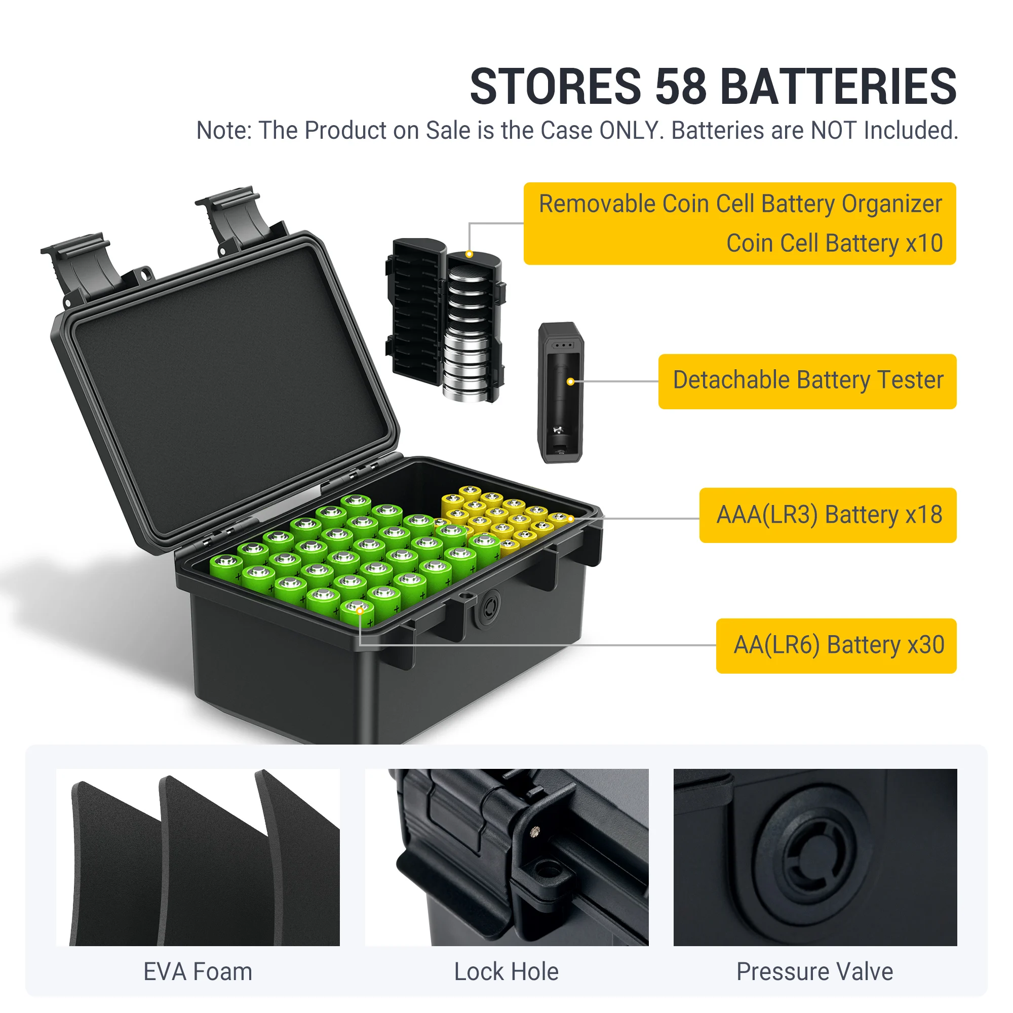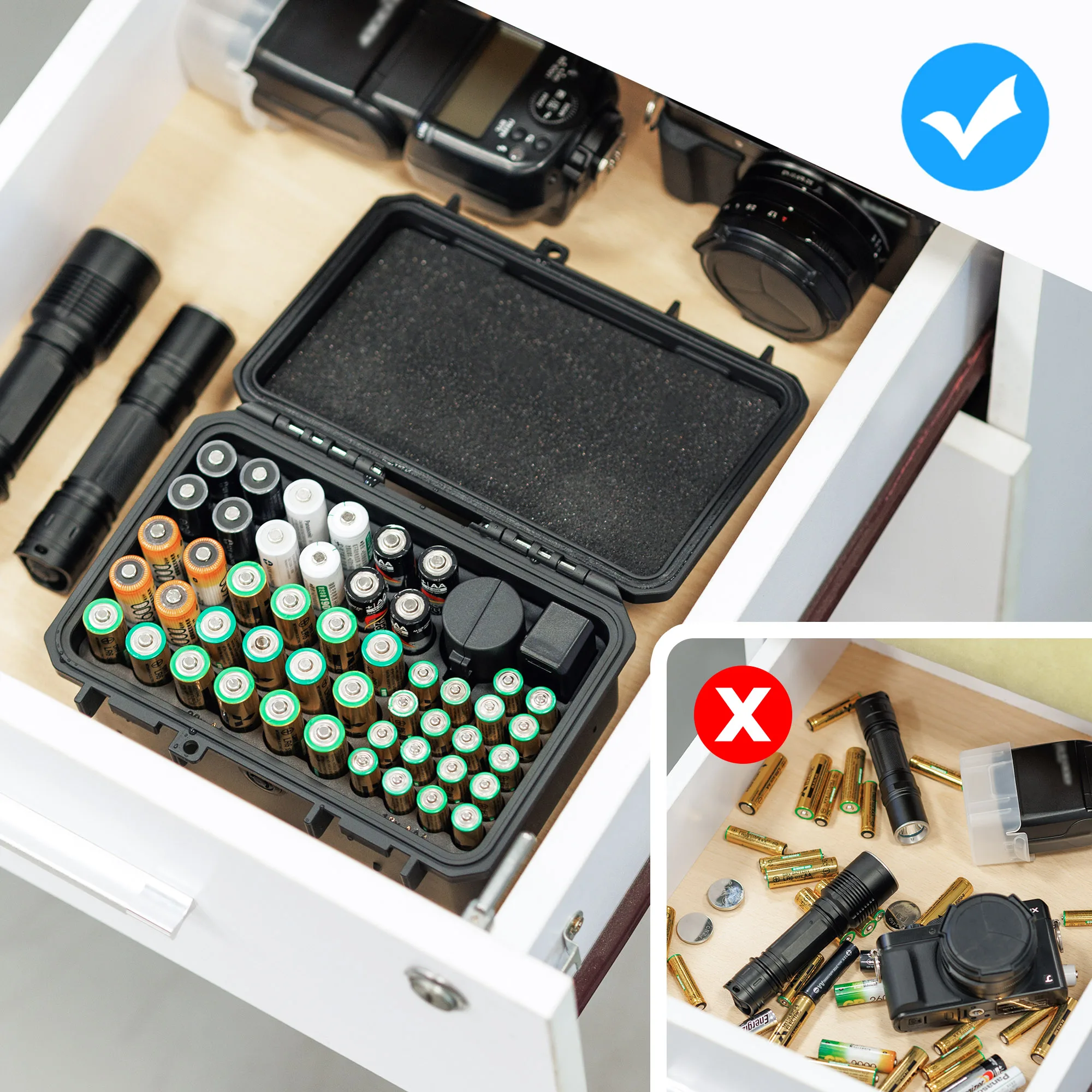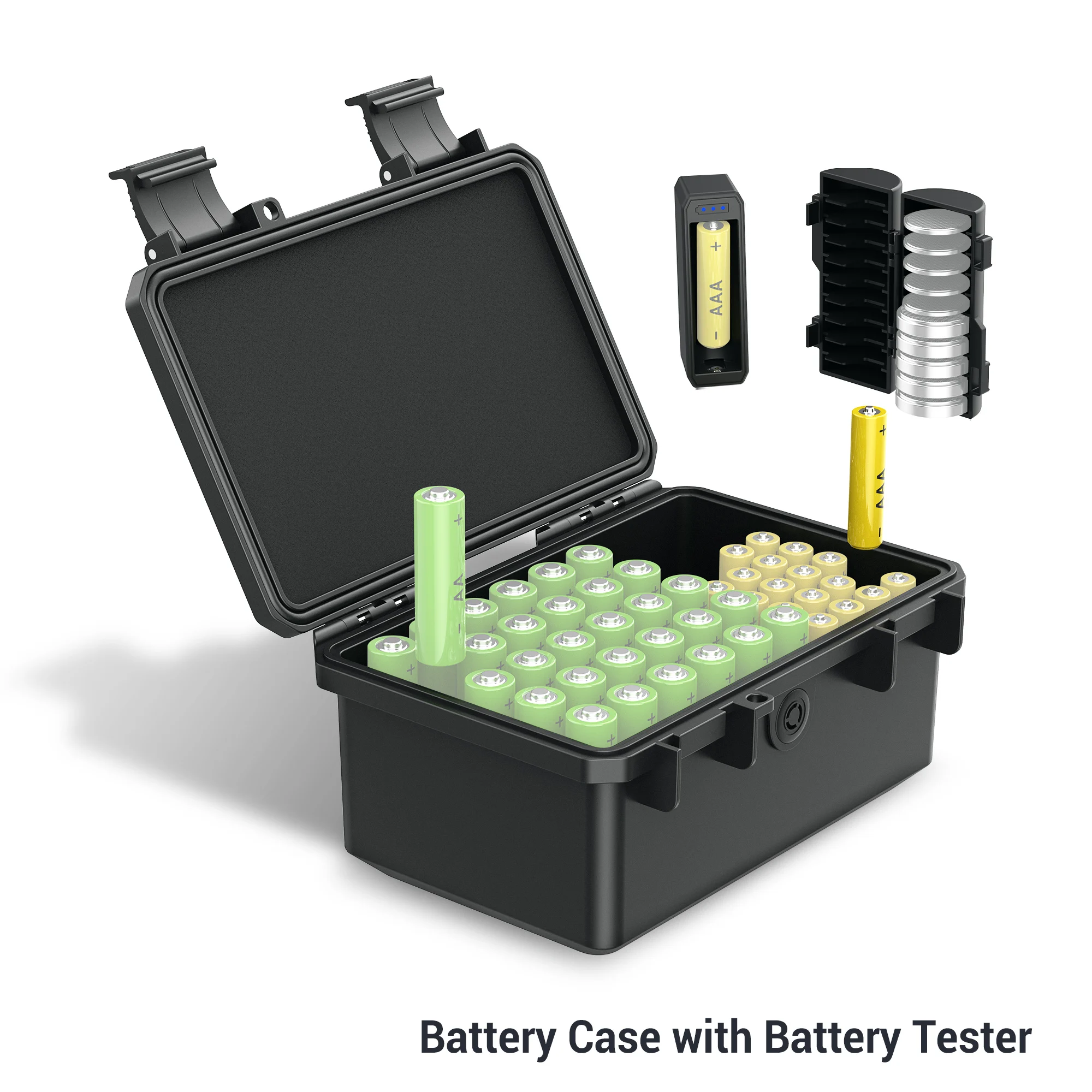 배터리 테스터 및 원통형 코인 배터리 홀더 방수 58 슬롯 AA /AAA 배터리 케이스