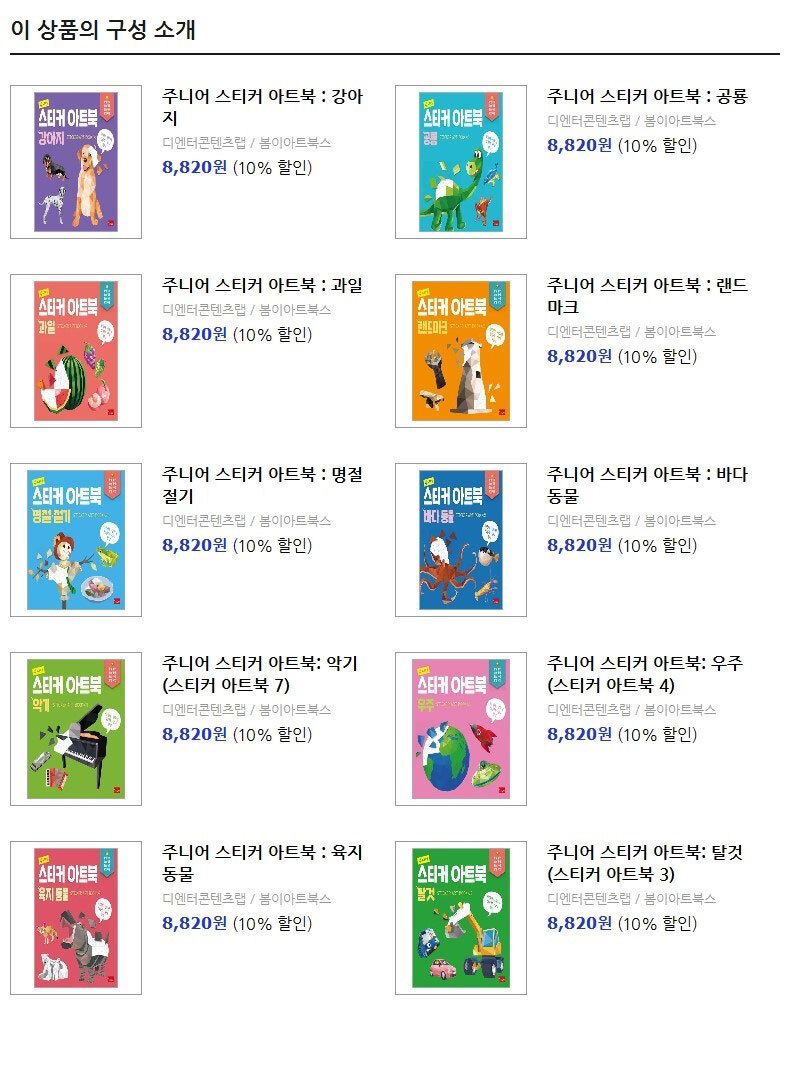 3권이상 스마트펜 / 스티커 아트북 / 컬러링북 안티스트레스북 조각조각 / 스티커 페인팅북 / 점잇기