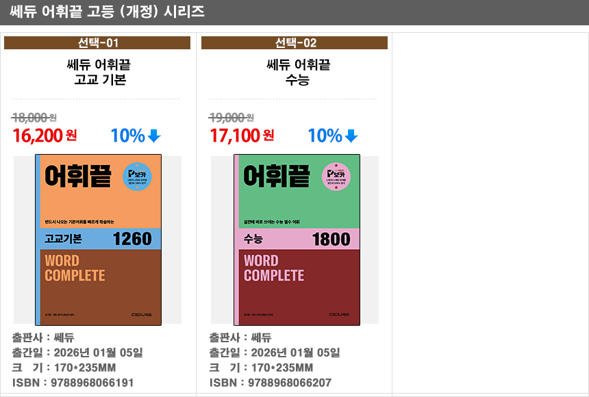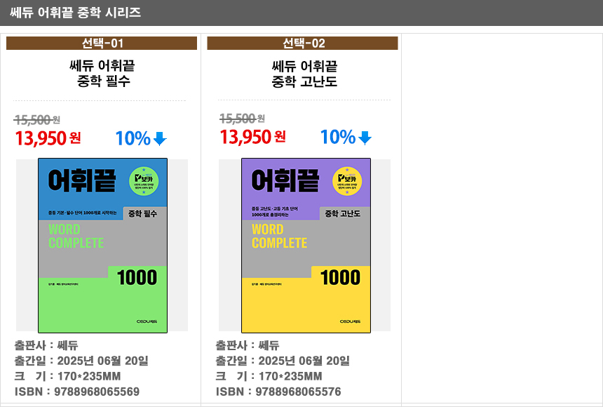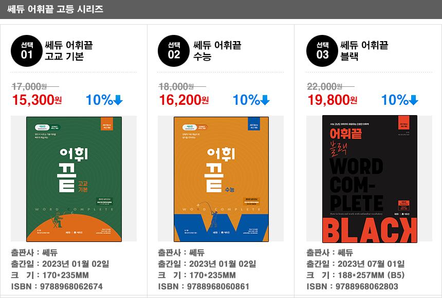 쎄듀 어휘끝 중학 필수 고난도 / 고등 고교 기본 수능 블랙 선택