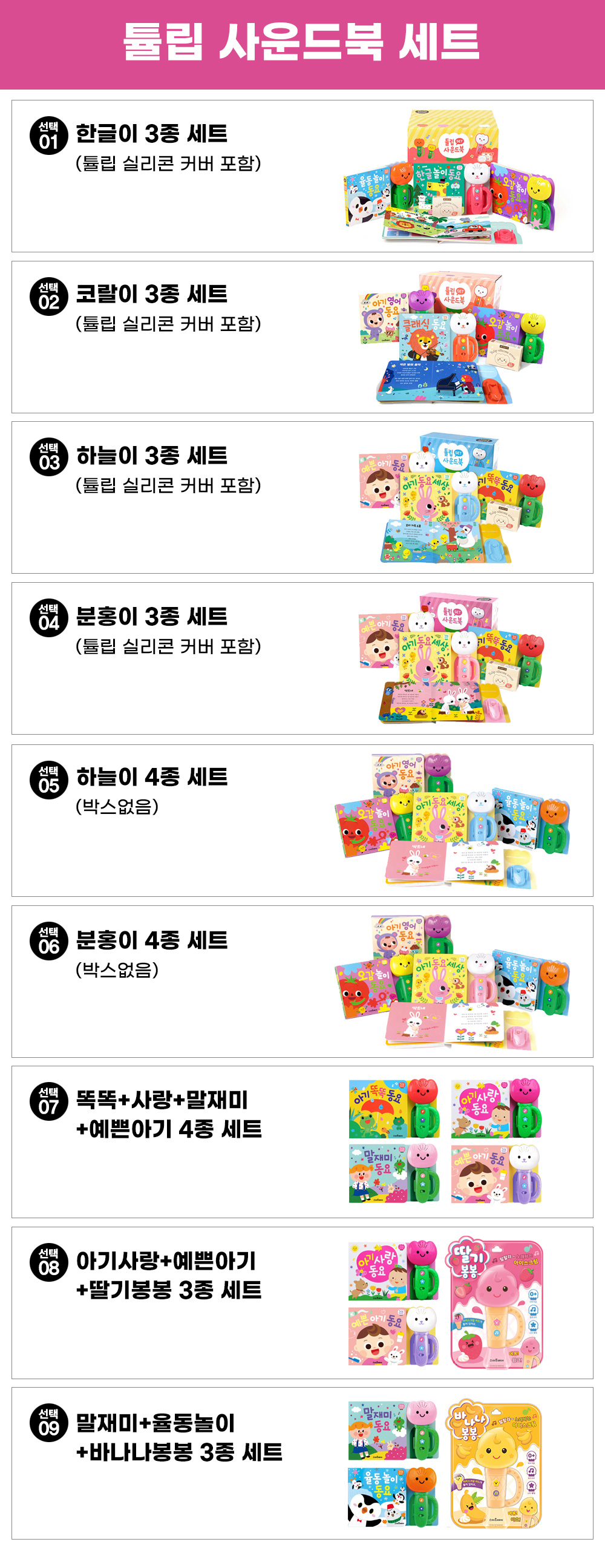 핫딜보장 국민육아템) 튤립 사운드북 세트 한글이/코랄이/분홍이/하늘이 세트