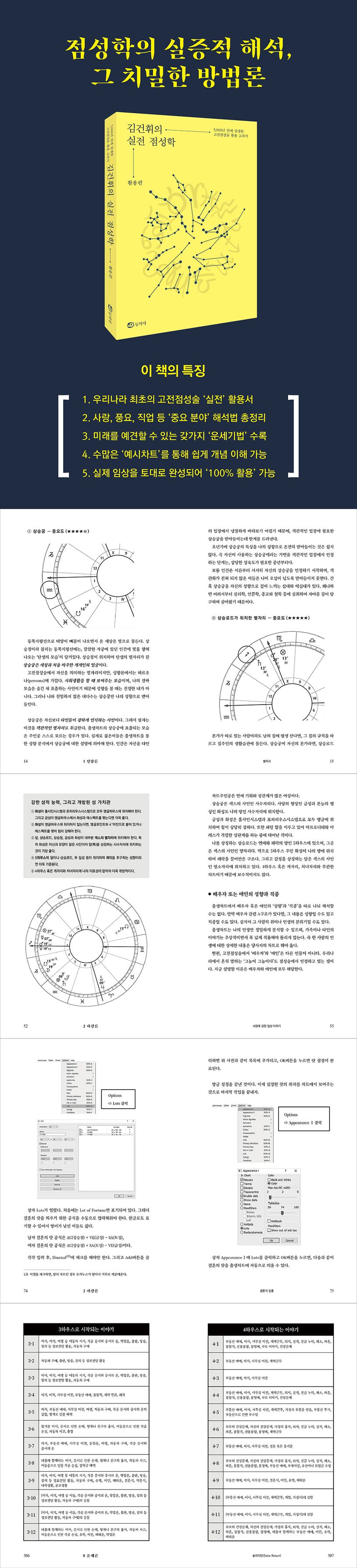 저자 김건휘 교수는 상담현장에서 오랫동안 출생차트를 연구한 점성학 임상학자다. 많은 임상사례를 몸소 체득하여 심도있는 연구를 이어왔으며 참으로 긴 시간 동안 이론을 정교하게 다듬었다. 저자는 점성술의 실증적 해석을 위한 새로운 방법을 제안하고 있다. 그는 처음 산수를 배우는 학생을 대하듯 쉽고 꼼꼼하게 다양한 문제를 풀어준다. 이 책은 현대사회에 맞도록 고대문헌을 뛰어넘는 탁월한 이론서다.