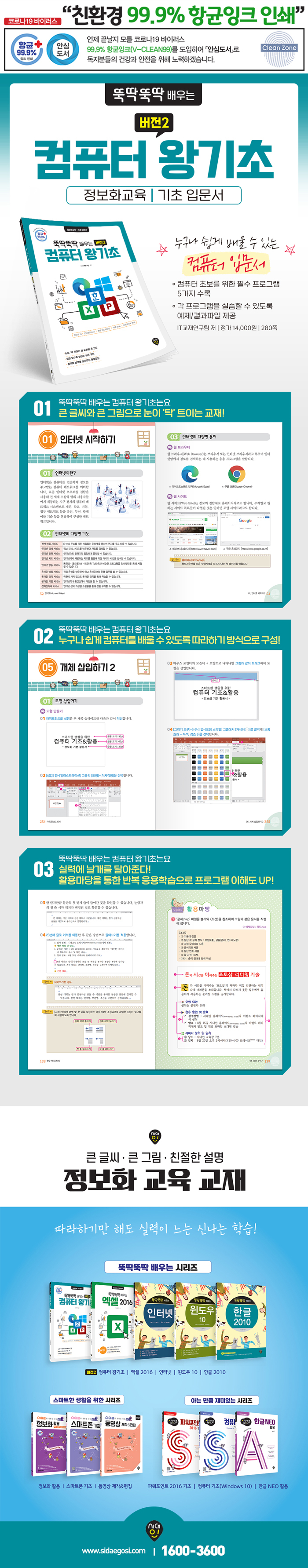 뚝딱뚝딱 배우는 버전2 컴퓨터 왕기초(윈도우10+인터넷(엣지)+한글 NEO+엑셀 2016+파워포인트 2016)