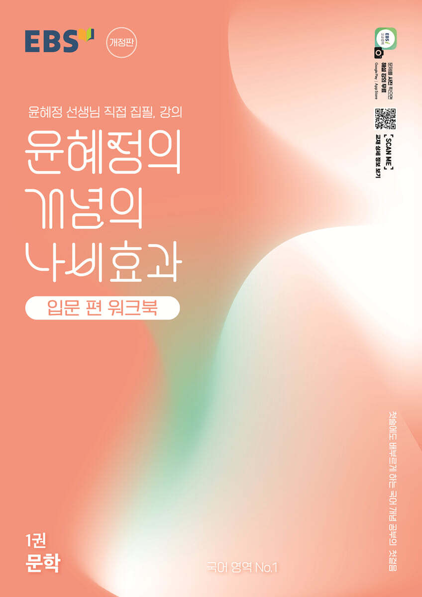 윤혜정 선생님의 음성 지원되는 듯한 친절한 설명과 함께 한 강에 두 번씩 '오늘 꼭 알아야 하는 개념'으로 키우는 국어의 기초 체력! 3단계 Step으로 시작하는 국어 개념 공부의 첫걸음. | | EBS 윤혜정의 개념의 나비효과 입문 편 워크북 1권 문학 (2025년) : 첫술에도 배부르게 하는 국어 개념 공부의 첫걸음 <윤혜정> 저 | 한국교육방송공사 | 2024년 11월 너를 성장시키는 교재, 너를 혼자 두지 않는 교재