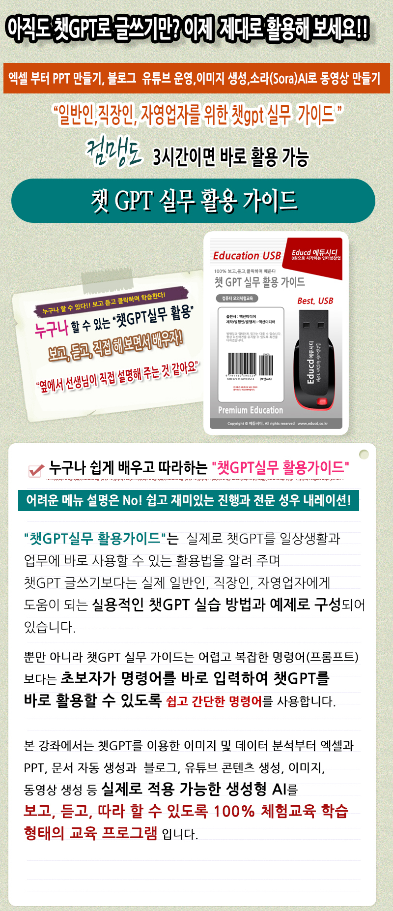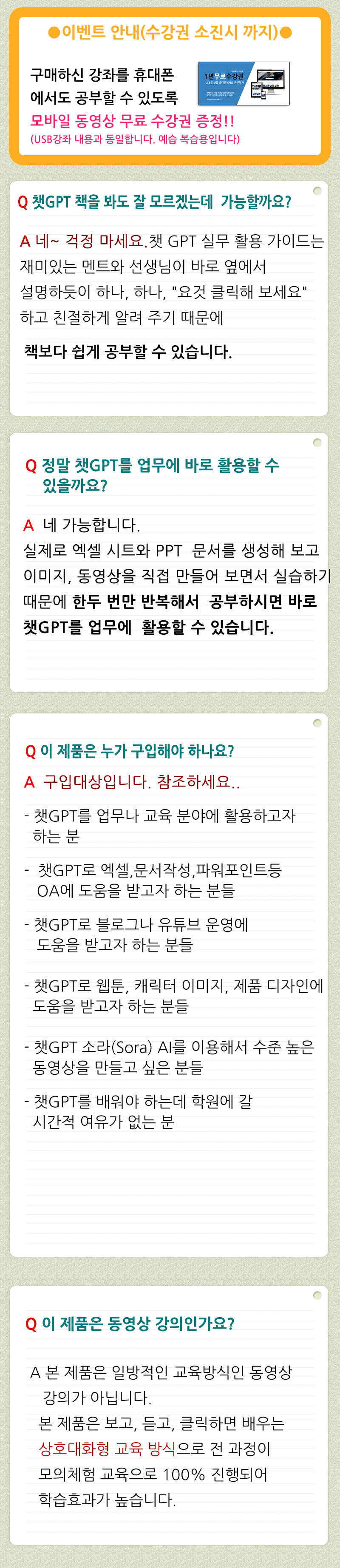 챗GPT 입문+실무 활용 가이드 CHAT지피티 사용법 책 서적보다좋 강의 소라AI 강좌 인강 교육 엑셀 유튜브