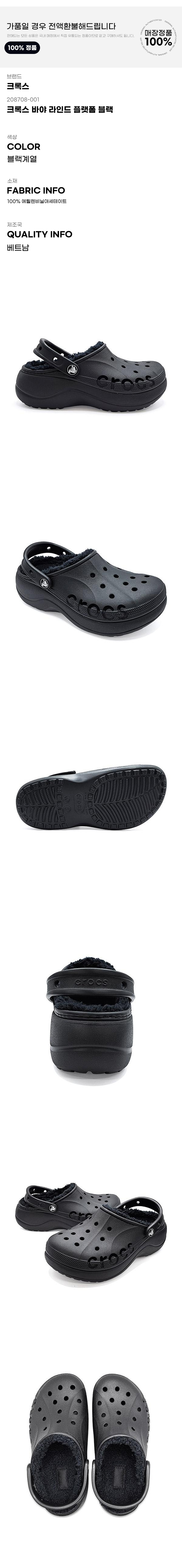 크록스 슬리퍼 샌들 208708-001 바야 라인드 플랫폼 블랙