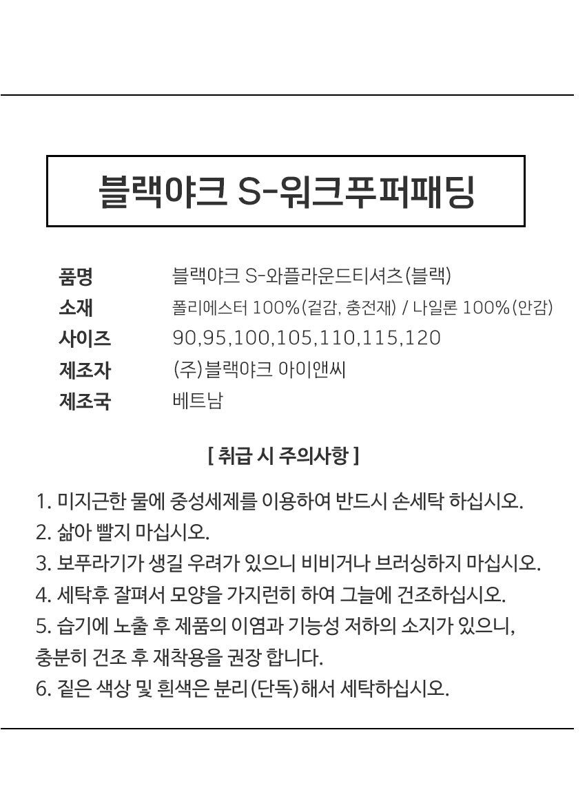 워크웨어 겨울 공용 패딩 생활방수 블랙야크 워크푸퍼패딩