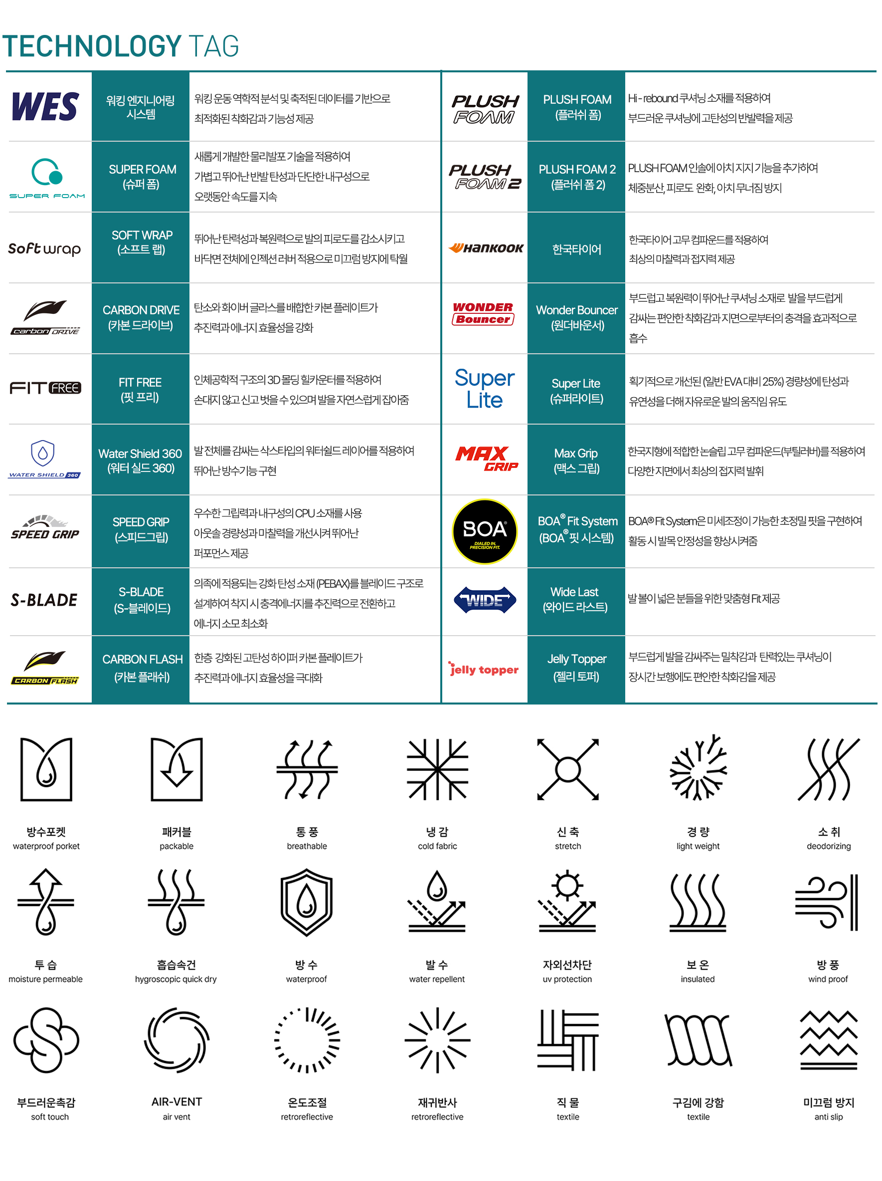 • 초경량 러닝화• 가볍고, 발의 뒤틀림 방지 기능이 장착된 솔 적용• 통기성과 터치감 좋은 메쉬 적용• 어퍼와 솔 모두 가볍고, 유연한 소재 적용하여, 장시간 운동시에도 피로도 최소화• 발가락 및 뒤꿈치 부위 재귀반사 포인트 적용하여, 야간 러닝시 시안성 확보
