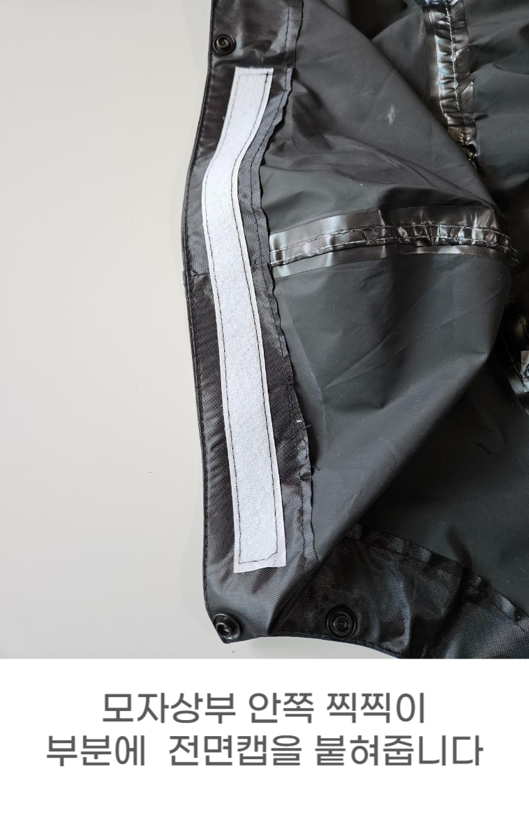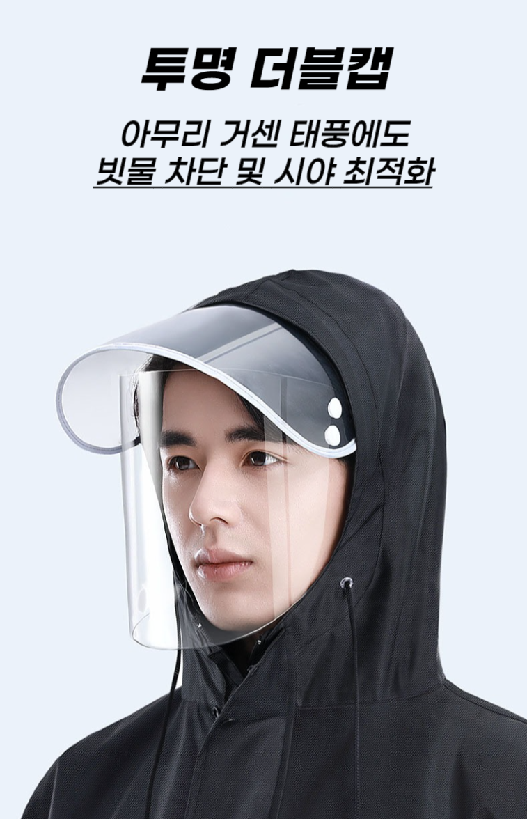 * 제품 색상은 사용자의 모니터 해상도 등 설정에 따라 실제 색상과 다소 차이가 있을 수 있습니다. * 해당 제품은 캡을 장착하여 착용하는 우의로 후드 부분이 크게 되면 시야가 가려져 위험하기 때문에 일정 치수 이상 넘어가지 않도록 제작된 정상 제품입니다. (위와 같은 이유로 반품 시 판매자 귀책 사유가 될 수 없는 점 양해 부탁드립니다.)