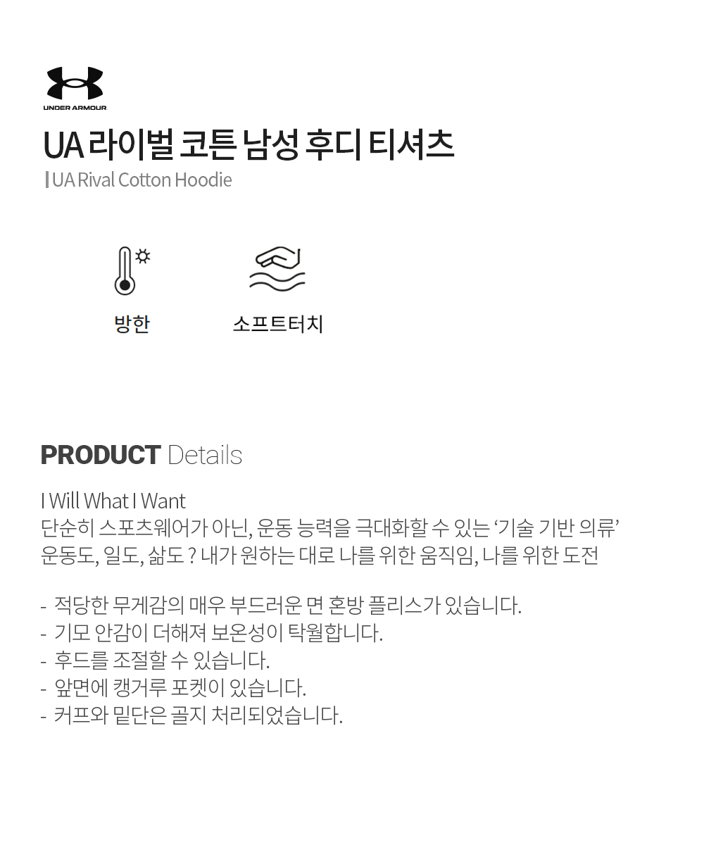 정상가 59000원 UA 라이벌 코튼 남성 후디 티셔츠_1357105-001