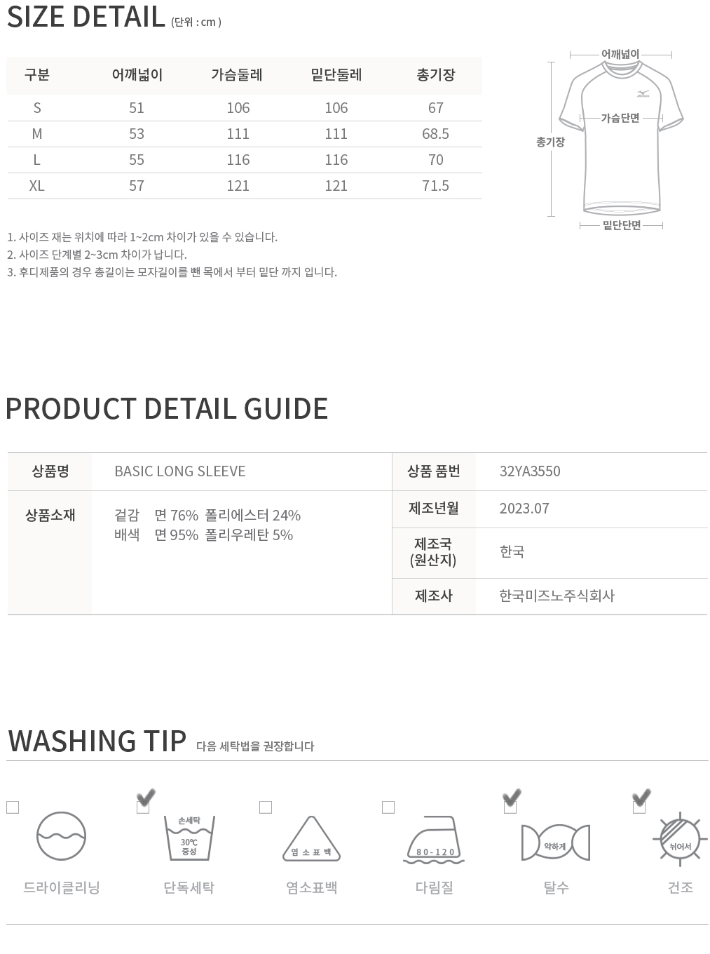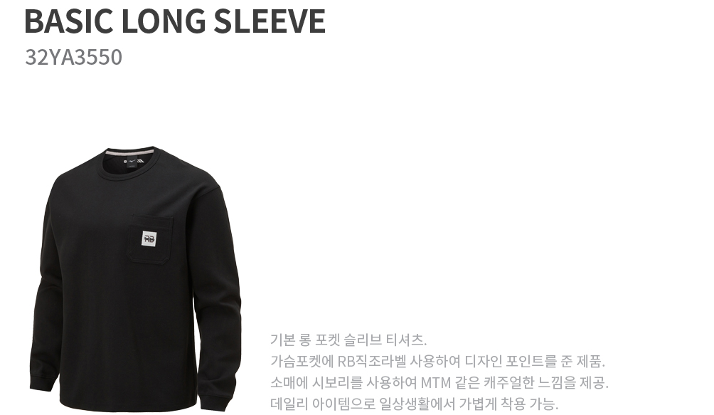 (신세계의정부점)미즈노 공용 베이직 롱 포켓 슬리브 티셔츠 32YA355009 활동성 신축성 운동 BASIC LON...