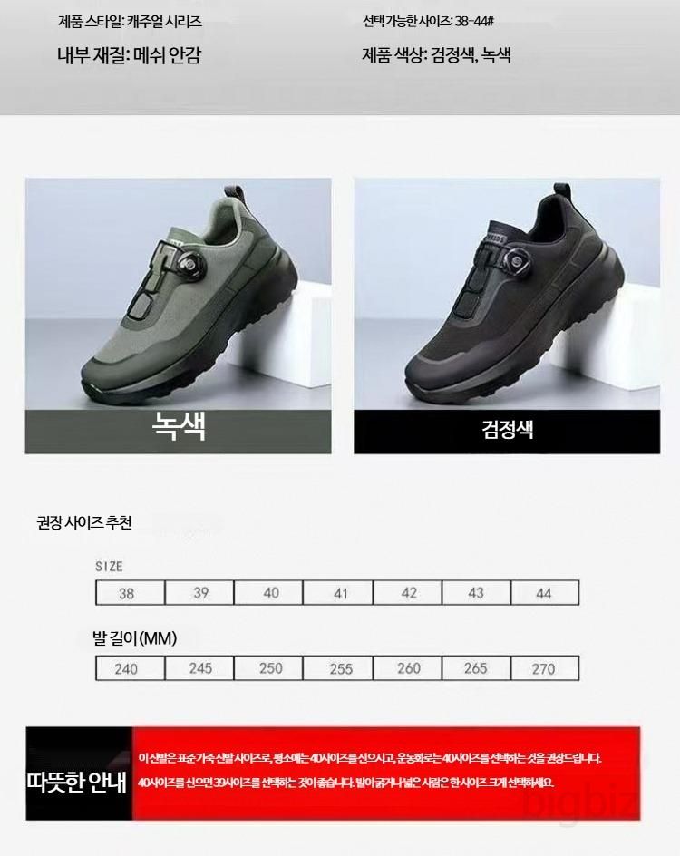 남성 다이얼 캐주얼신발 통근용 미끄럼방지 스포츠운동화 두꺼운바닥