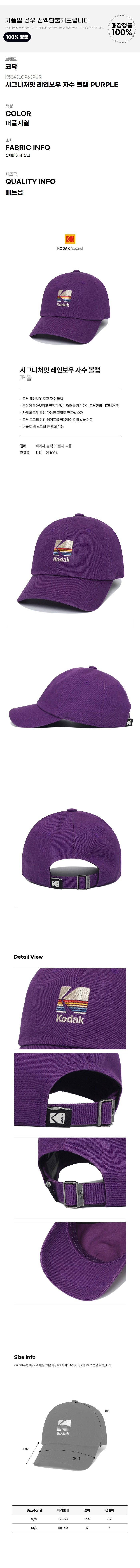 모자 UQS K5343LCP63PUR 시그니처핏 레인보우 자수 볼캡 PURPLE