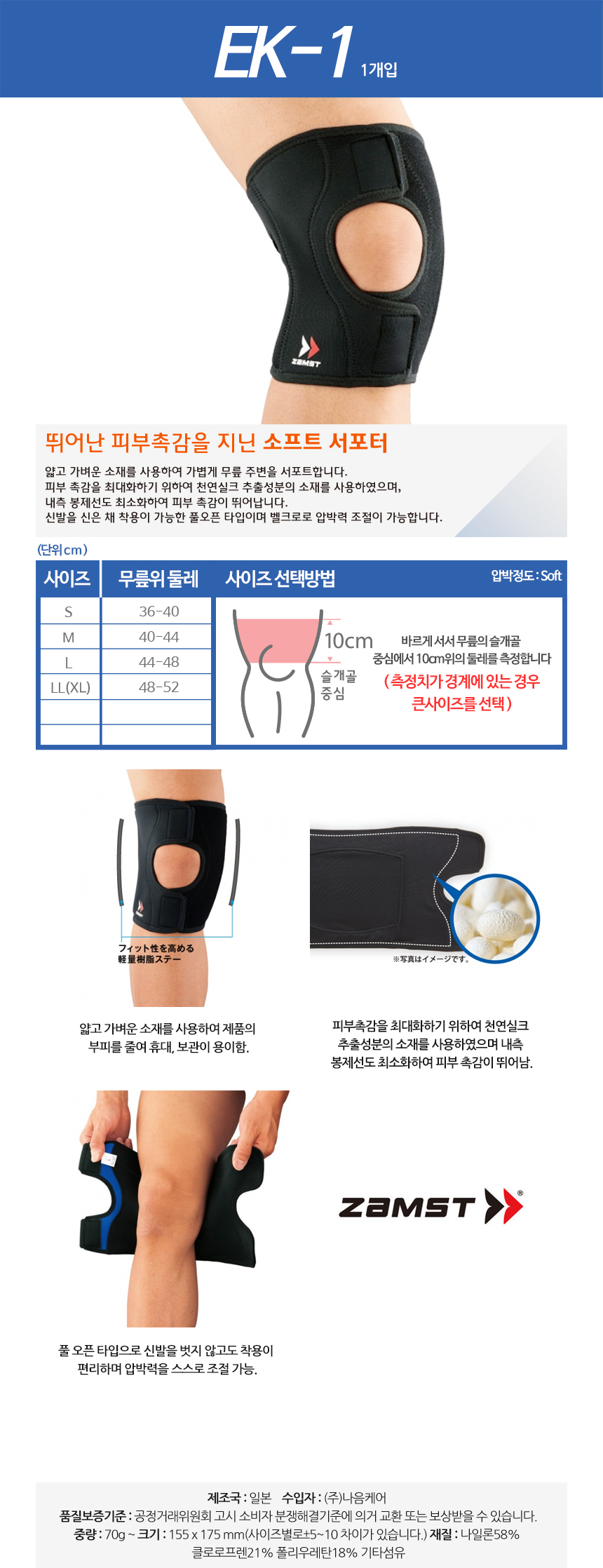 EK-1 무릎보호대 관절 재활 테니스 1개 블랙 좌우겸용