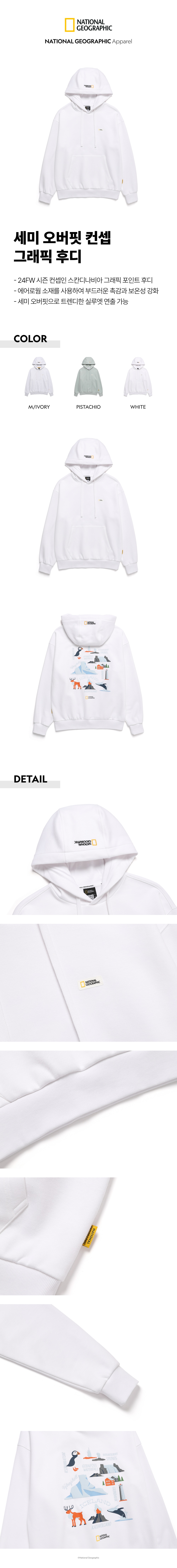 (현대Hmall)정상가:139000원내셔널지오그래픽 N244UHD920 컨셉 그래픽 세미오버핏 후디 WHITE