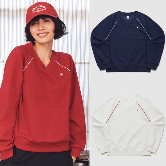 (롯데백화점)(나나 착용) 여성 에센셜 브이넥 루즈 맨투맨 QQ322LFS91