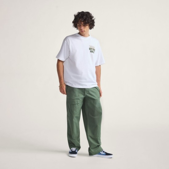 자수 장식이 프리미엄급 디테일을 더하며 스케이트보딩 라벨 패키지가 반스 카고 팬츠임을 명확히 보여줍니다.