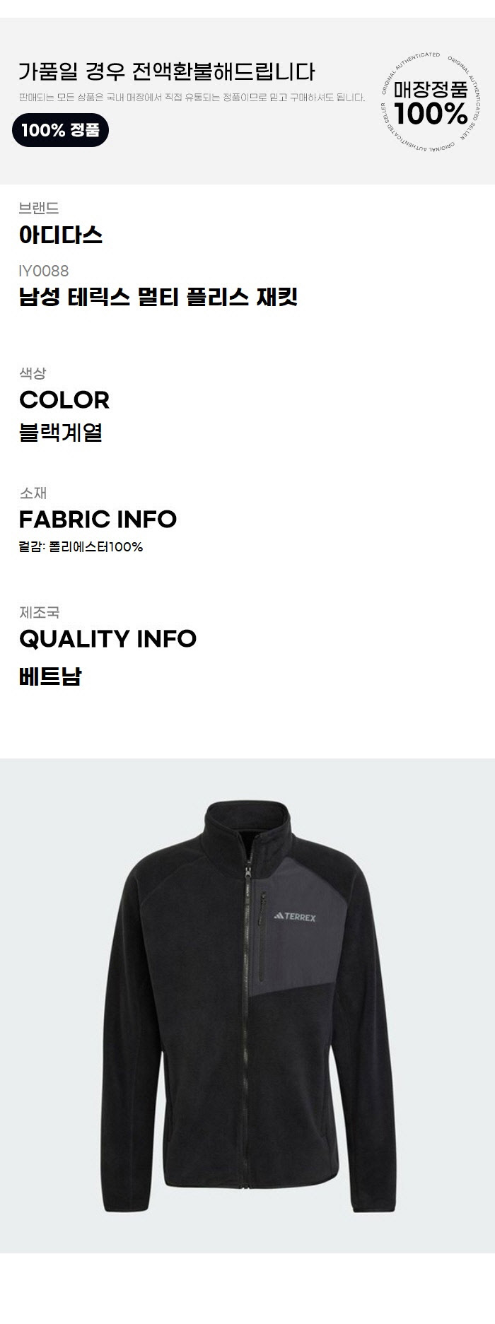 아디다스 자켓 XQK IY0088 남성 테릭스 멀티 플리스 재킷