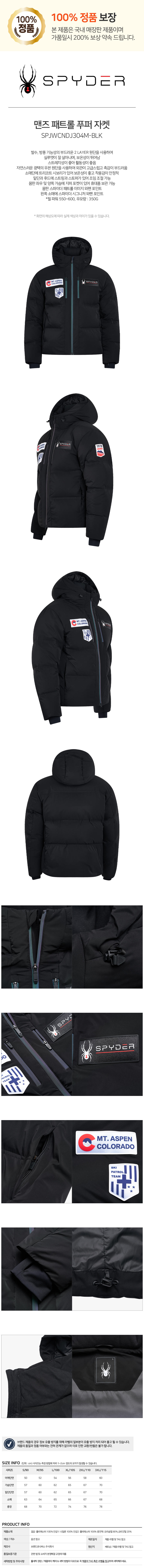 SPYDER 남성 패트롤 푸퍼 패딩 다운 자켓 FM1SPJWCNDJ304M-BLK