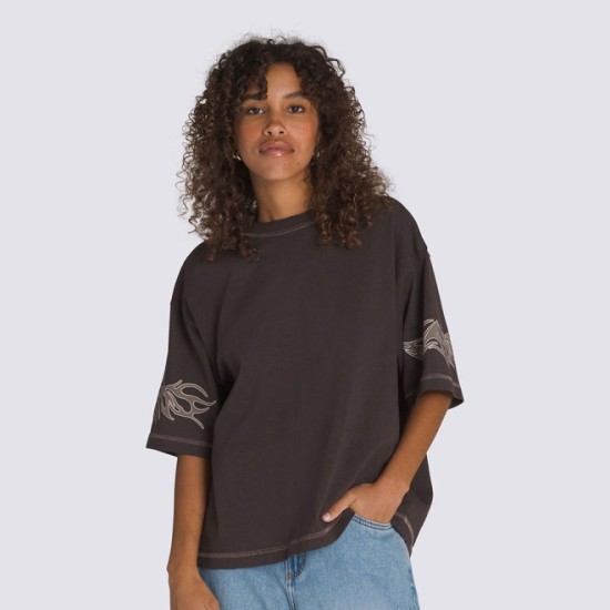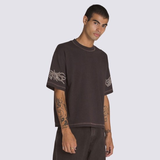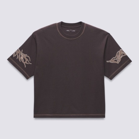 Skate Mike Gigliotti Tribal 티셔츠는 아티스트이자 디자이너겸 스케이트보더인 마이크 지글리오티(Mike Gigliotti)가 디자인한 루즈핏의 크롭 반팔 크루넥 티셔츠입니다. 소매에는 지글리오티가 디자인한 퍼프 잉크 그래픽이 프린트되어 있으며 5체커보드 자수 디테일과 Vans 스케이트보딩 라벨 패키지가 특징입니다.