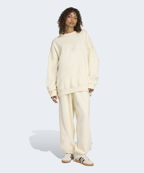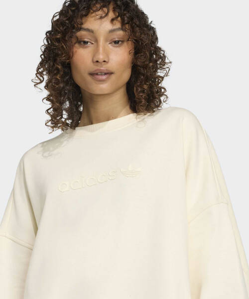 아디다스 ADIDAS 에센셜 리니얼 오버사이즈 크루 스웨트셔츠 - 크림화이트 JW1016 2479112