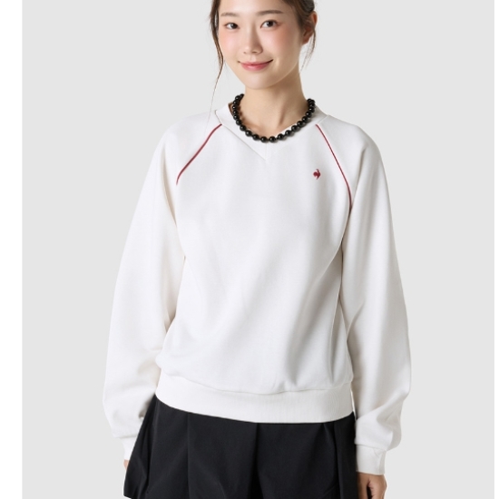 (롯데백화점)(나나 착용) 여성 에센셜 브이넥 루즈 맨투맨 QQ322LFS91_IVY