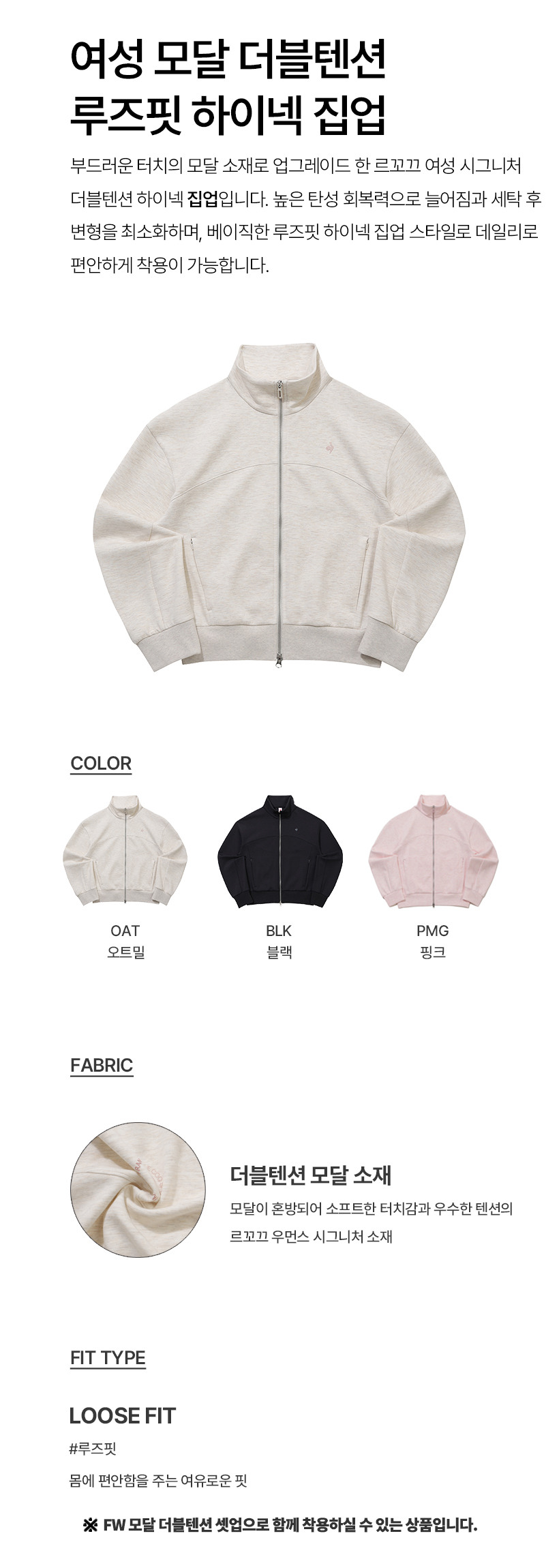 (롯데백화점)(나나 착용) 여성 모달 더블텐션 루즈핏 하이넥 집업 QQ322OFT81