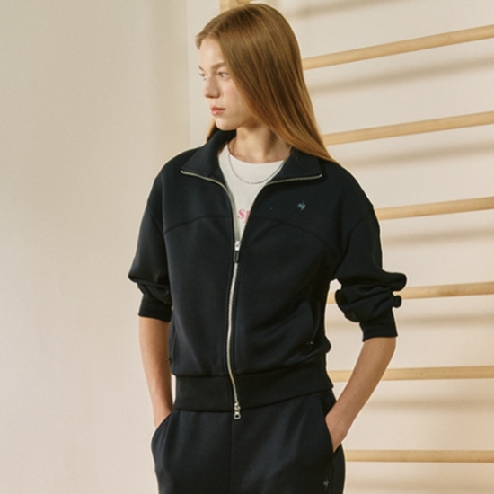 (롯데백화점)(나나 착용) 여성 모달 더블텐션 루즈핏 하이넥 집업 QQ322OFT81_BLK