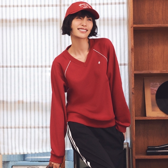 (롯데백화점)(나나 착용) 여성 에센셜 브이넥 루즈 맨투맨 QQ322LFS91_DRD