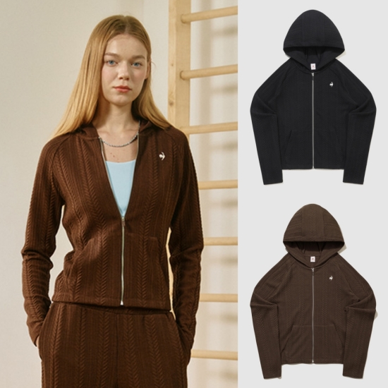 (롯데백화점)여성 슬림핏 케이블 자가드 후드 집업 QQ322OFT91
