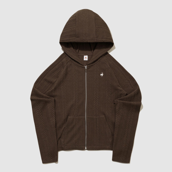 (롯데백화점)여성 슬림핏 케이블 자가드 후드 집업 QQ322OFT91_BRW