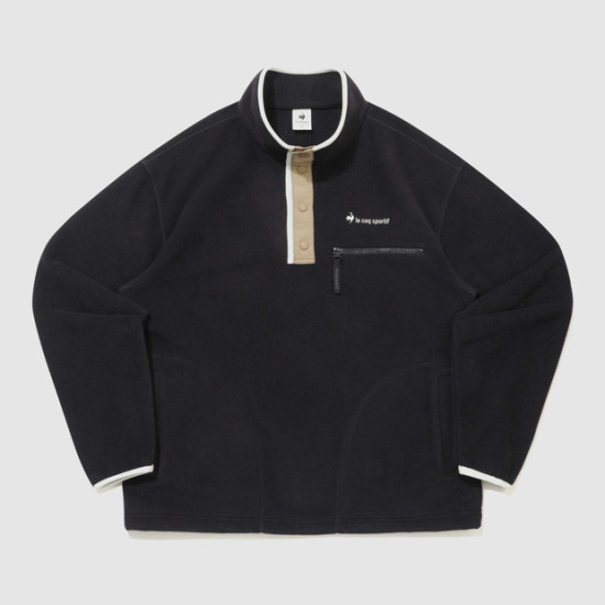 (롯데백화점)유니 플리스 우븐믹스 루즈 하프집업 QQ423LFSO3_BLK