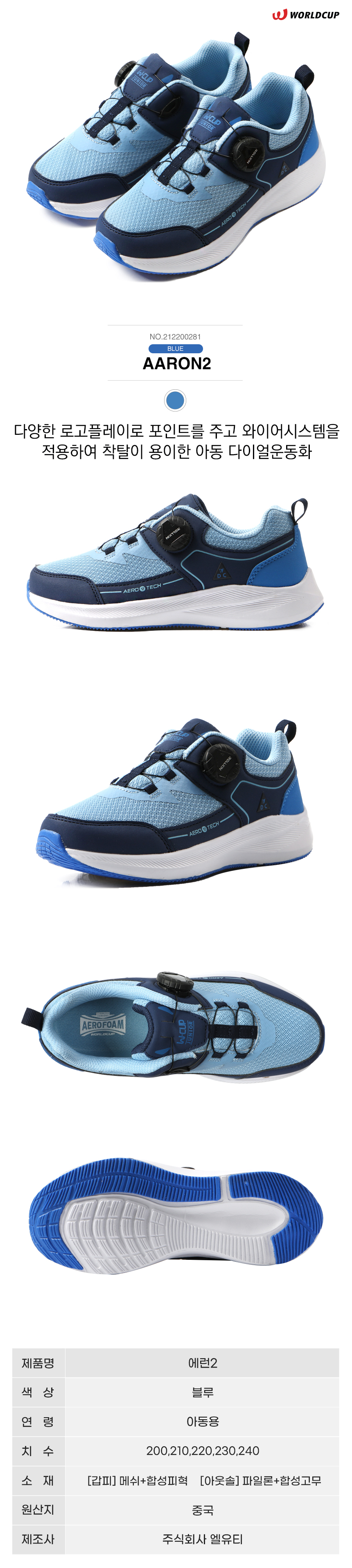 월드컵 에런2 블루 아동 다이얼 운동화 초등 유아 신발
