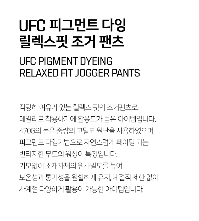 (UFC SPORT)(신세계김해점)UFC 피그먼트 다잉 릴렉스핏 조거 팬츠 다크블루 U2LPU3312DB
