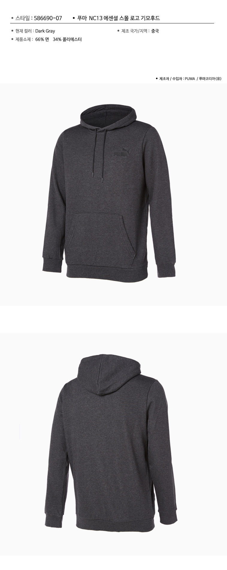 푸마 공용 에센셜 스몰 로고 플리스 후드티 586690-07