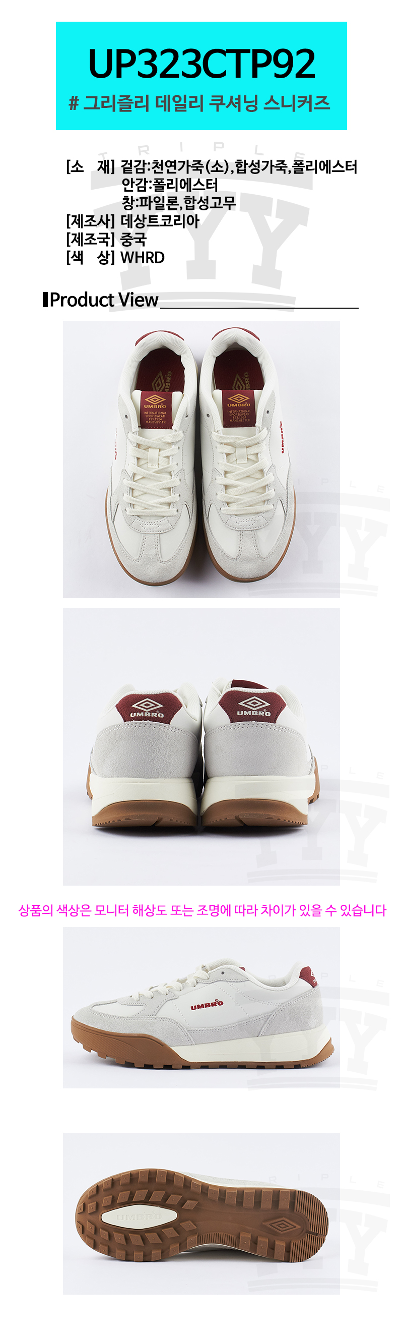 엄브로 그리즐리 데일리 쿠셔닝 스니커즈 UP323CTP92 WHRD