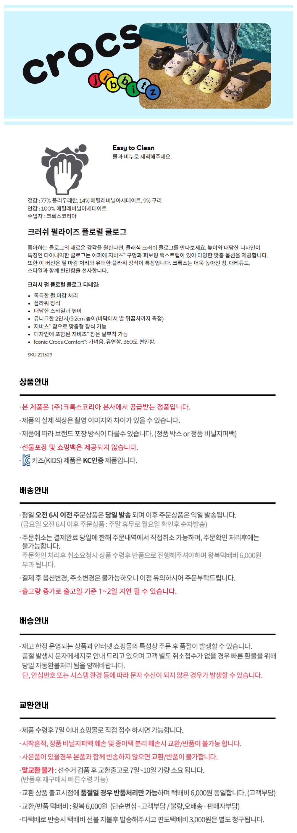 (신세계하남점)남여공용 크러쉬 펄라이즈 플로럴 클로그 211629-100 크록스 샌들 슬리퍼 지비츠 데일...