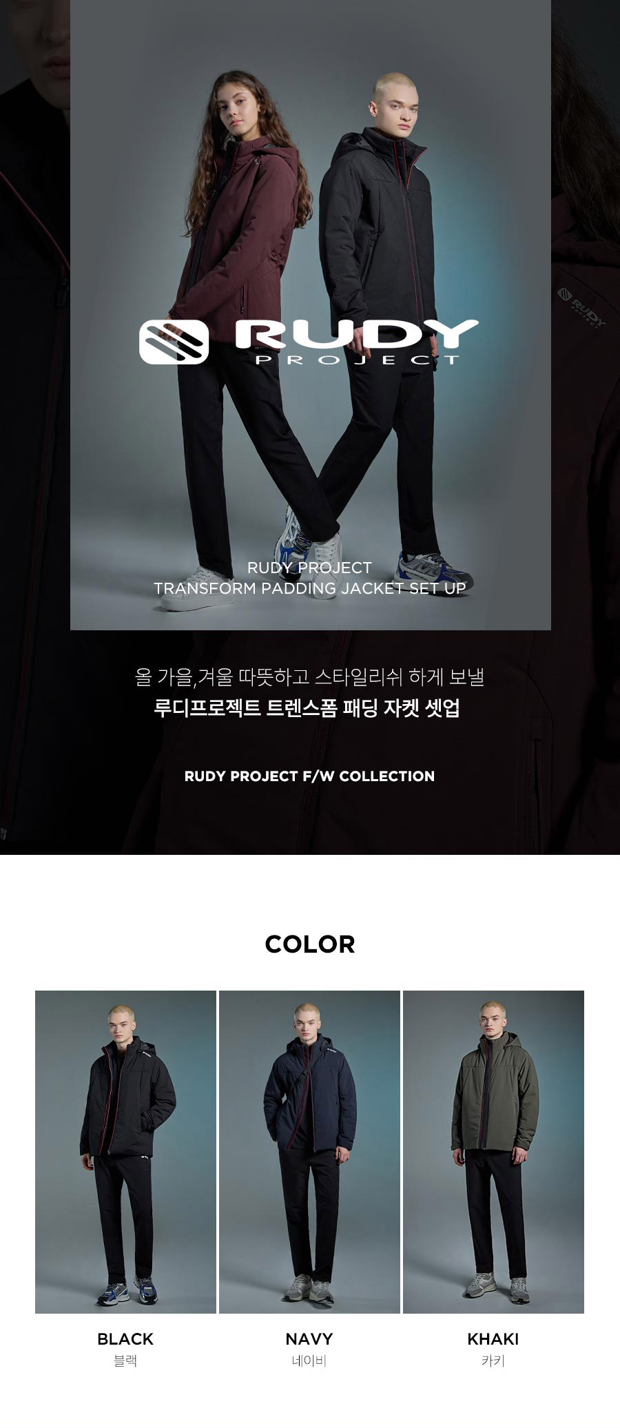 루디프로젝트 경량 후드 패딩 상하의세트 남성 3컬러 택1
