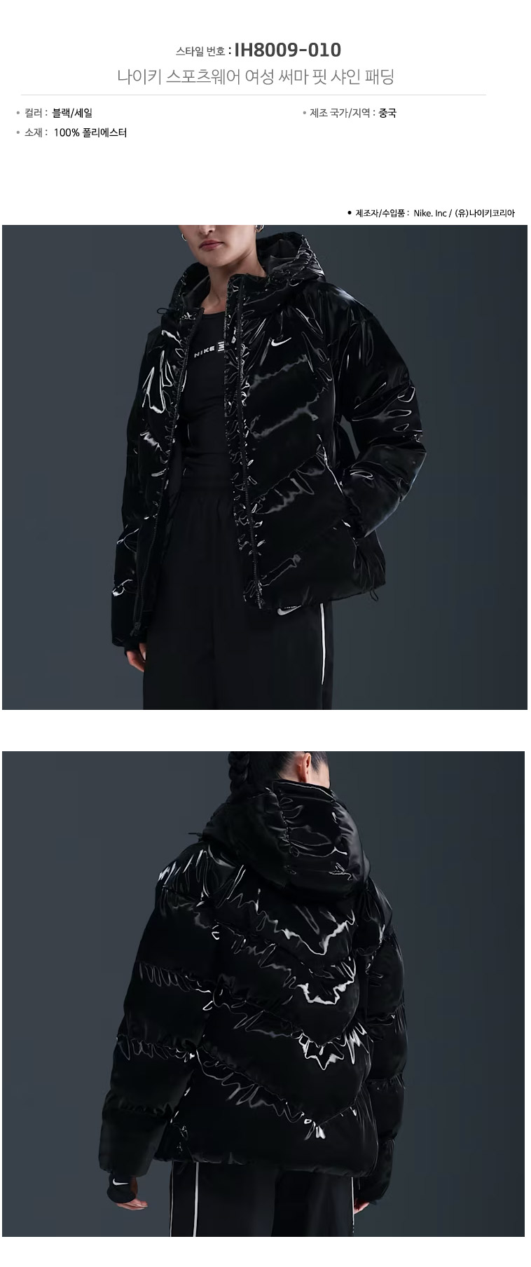 [나이키 국내매장판] 여성 AS 써마핏 샤인 쉐브론 라인 윈드푸퍼 패딩 IH8009-010