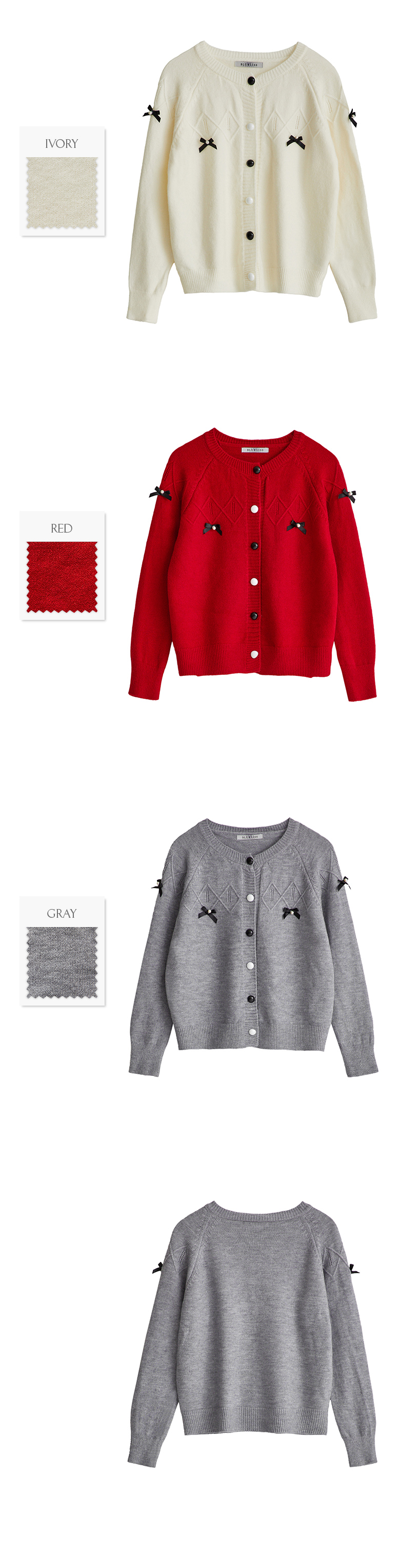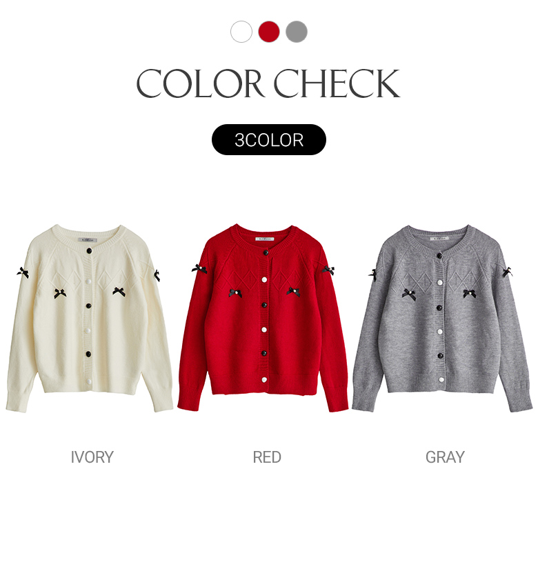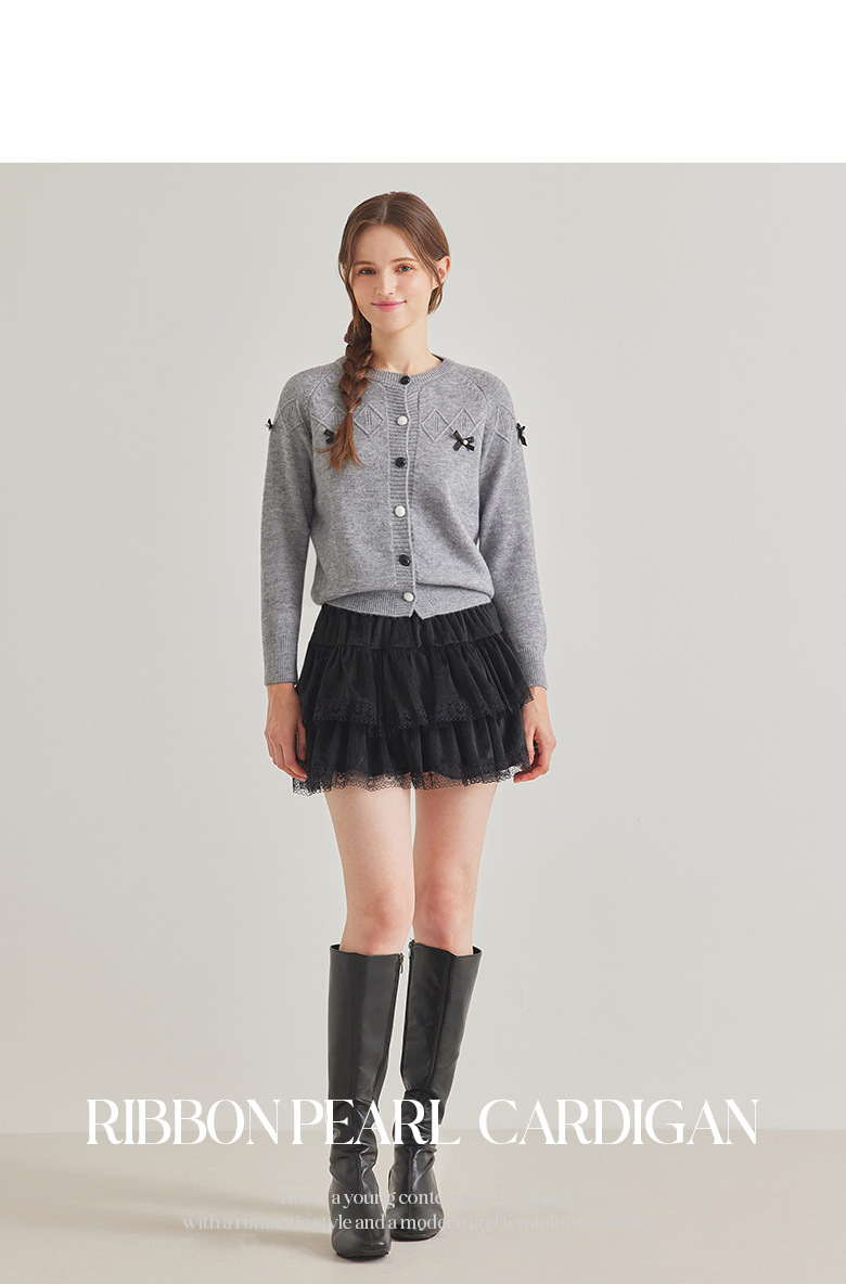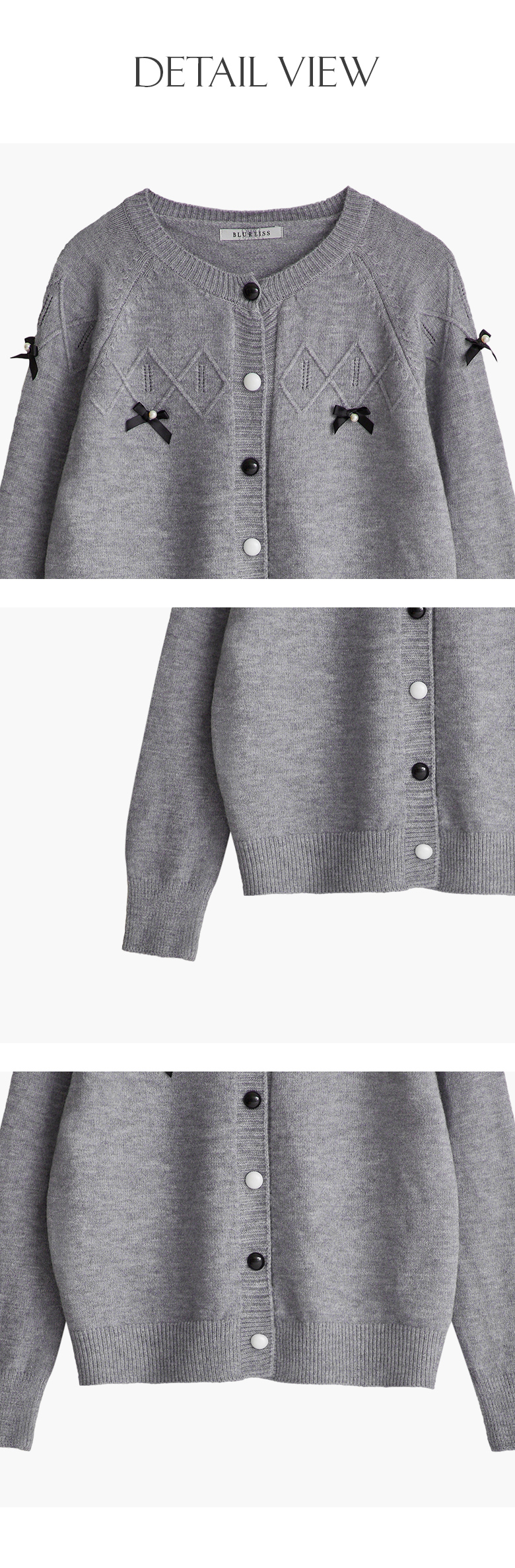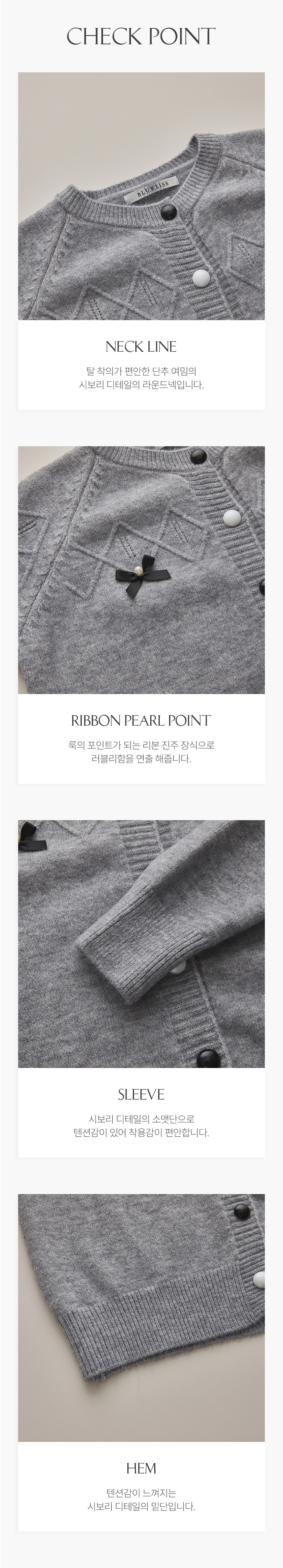 포커스 리본 진주 라운드넥 니트 가디건 PBBF5F3KC4501