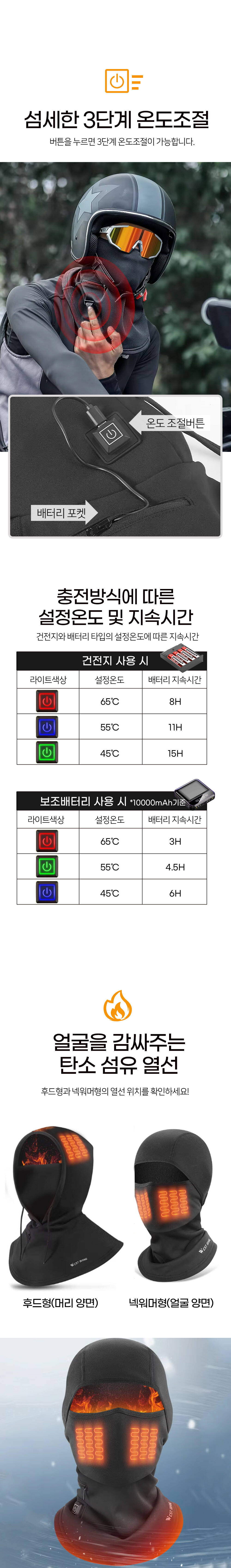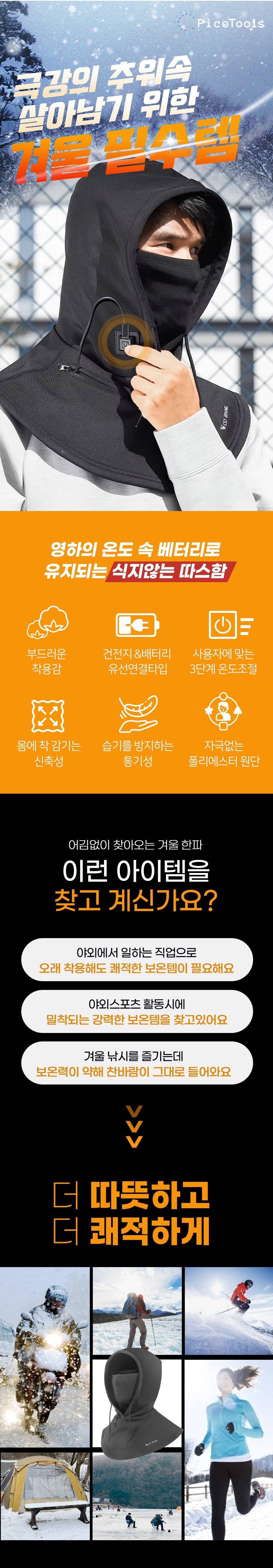 3단 온도조절 바라클라바 발열 열선 마스크 겨울 넥워머 자전거 바이크 배달 오토바이 방한 복면