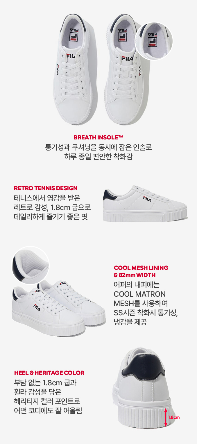 테니스에서 영감을 받은 레트로 디자인으로 휠라만의 “CLEAN, SIMPLE, RICHNESS” 콘셉트를 강조한 모델입니다.