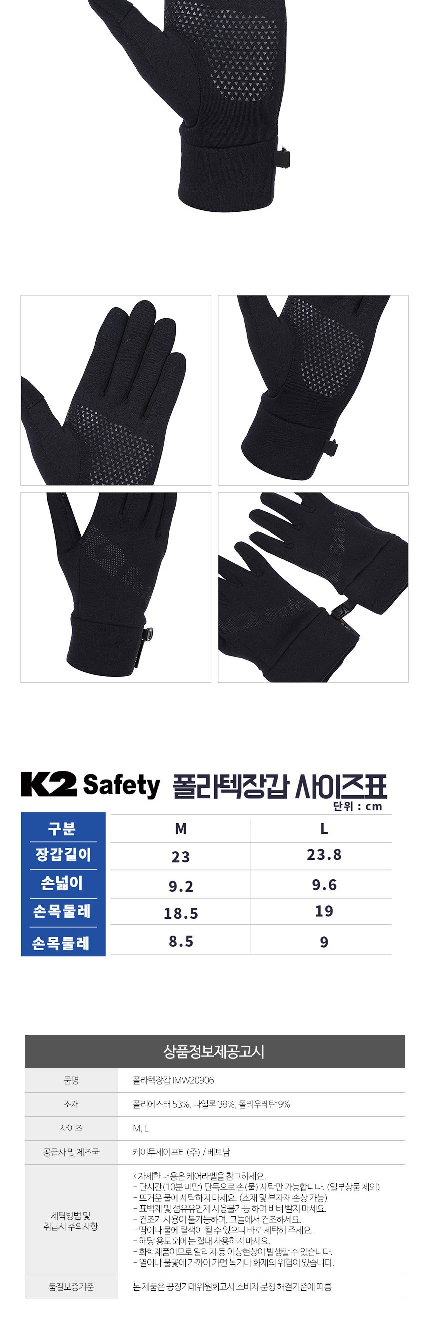 상품명 : K2 세이프티 폴라텍장갑 IMW20906