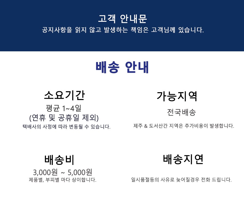 (최소 3000 원의 도서산간 지역 추가 배송비가 부과될 수 있습니다.)