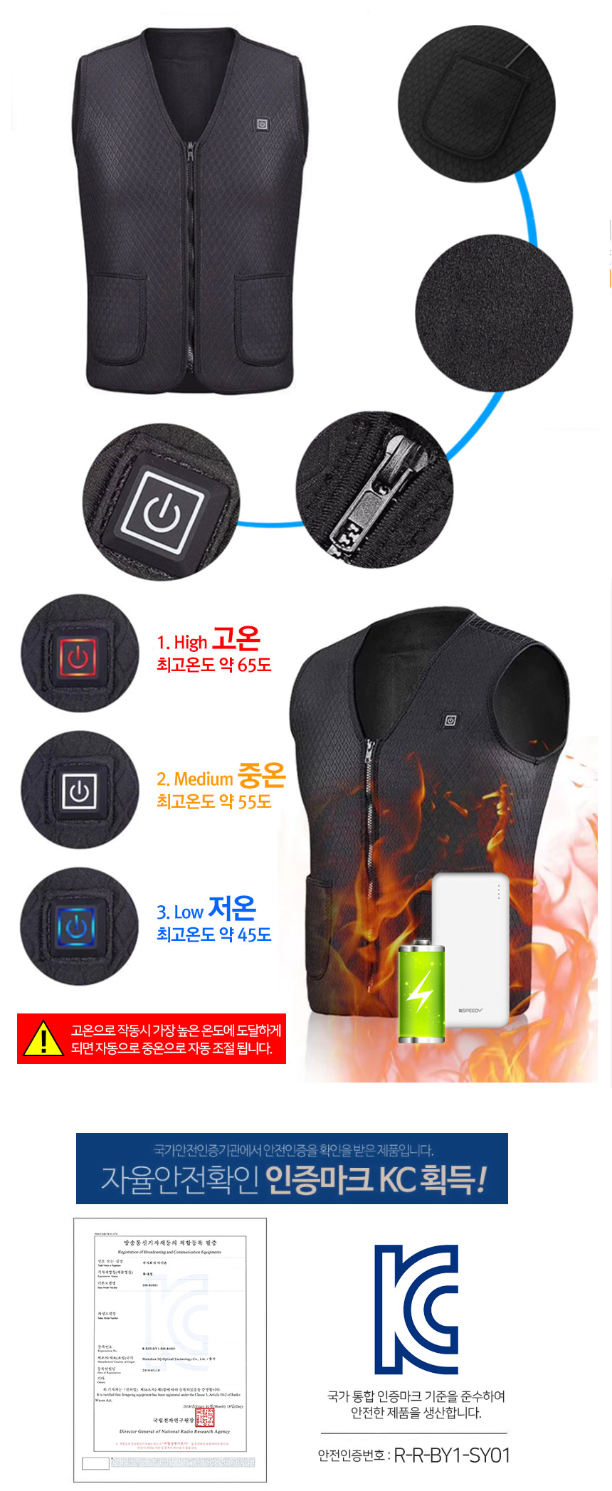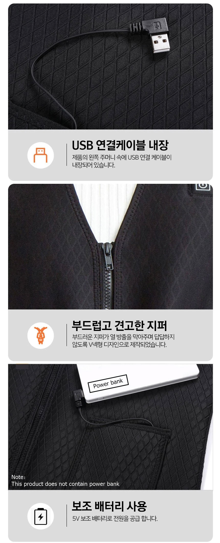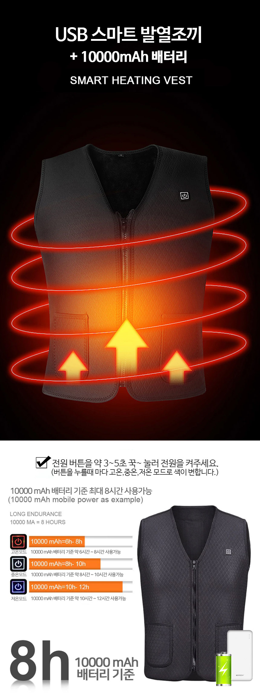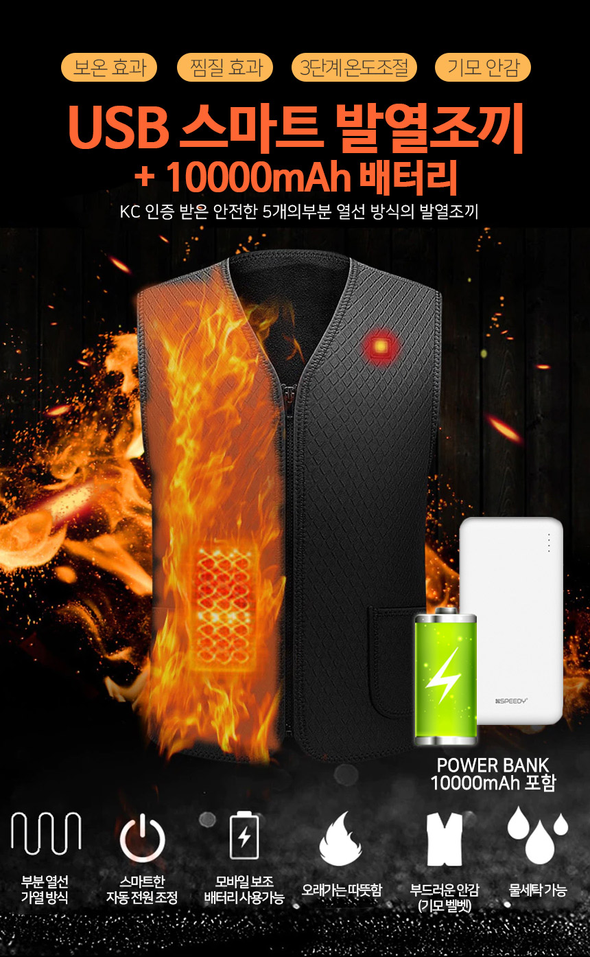 USB 3단조절 스마트 발열조끼 + 10000mAh 보조배터리